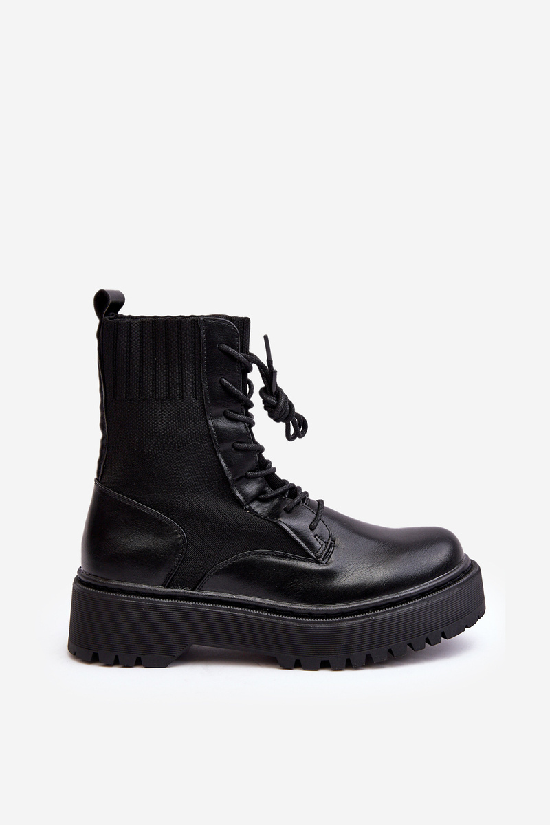 Women's Lace-up Ankle Boots with Sock Black Dedinva