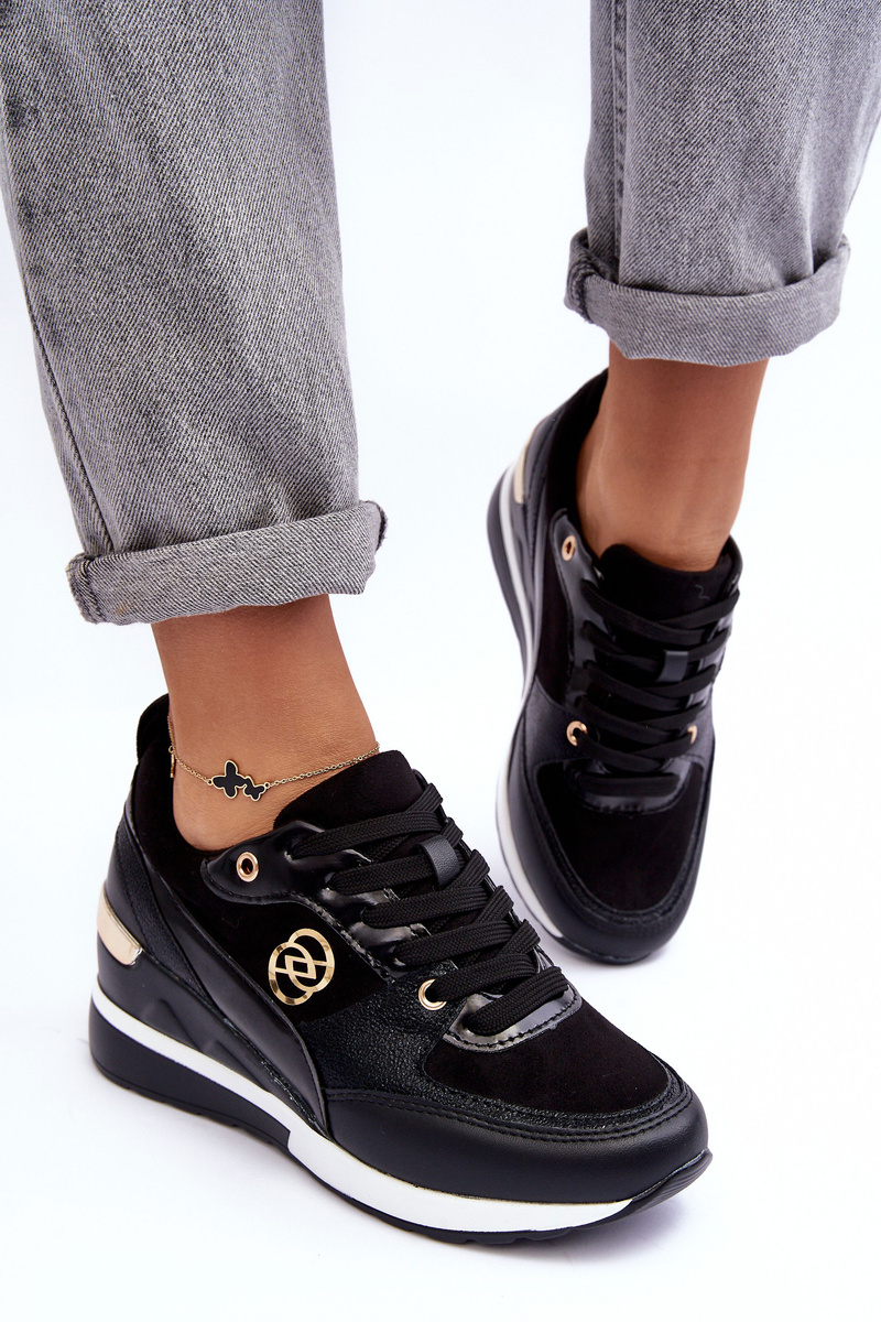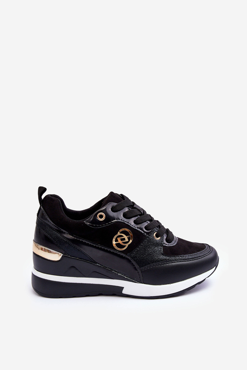 Women's Lace-up Sport Shoes on Wedge Heel Black Genova