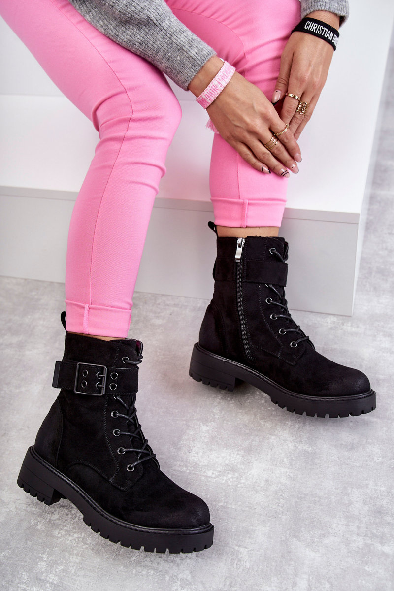 Fashionable women's boots are made of eco suede. They have a zipper on the side of the upper, lacing and a buckle with an adjustable strap. In the middle there is a warming in the form of a shoe blanket. The shoes also have a stiffened heel. A great model for cold autumn days! Be sure to also check out the other models of boots available on our website! When choosing a size, please use the size chart.