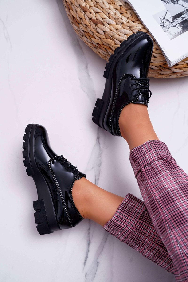 Classic half shoes that will emphasize our every styling. Fashionable lacquered color combined with silver rivets. Thick sole emphasizes their strong style. When choosing the size, please suggest the size chart, which is available after hovering over or clicking on a given size.