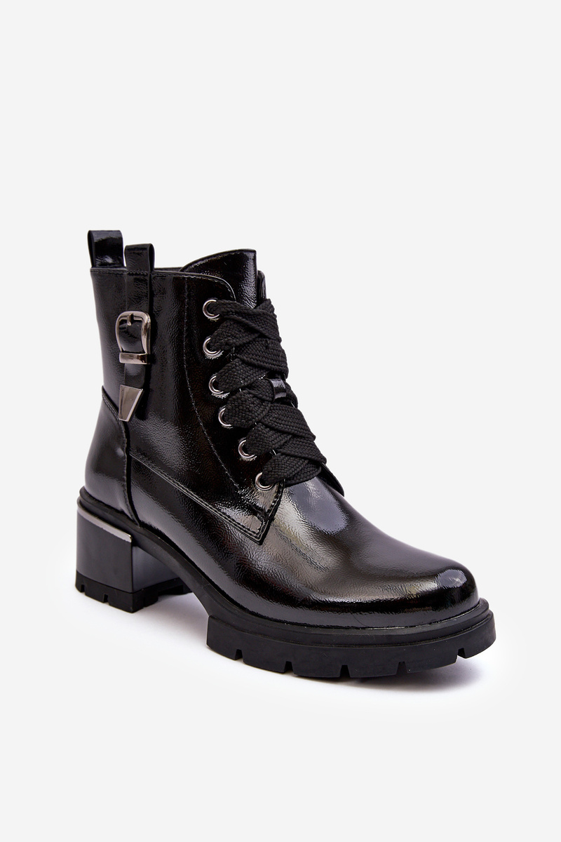 Women's boots from the brand are set on a low, massive heel and platform. This model was made of eco-leather. The zipper on the side of the upper and lacing allow for proper fitting of the footwear to the thickness of the leg. The tip is rounded. The interior is warmed with a pleasant to the touch insole. In addition, the toe is stiffened. When choosing a size, please refer to the size chart.