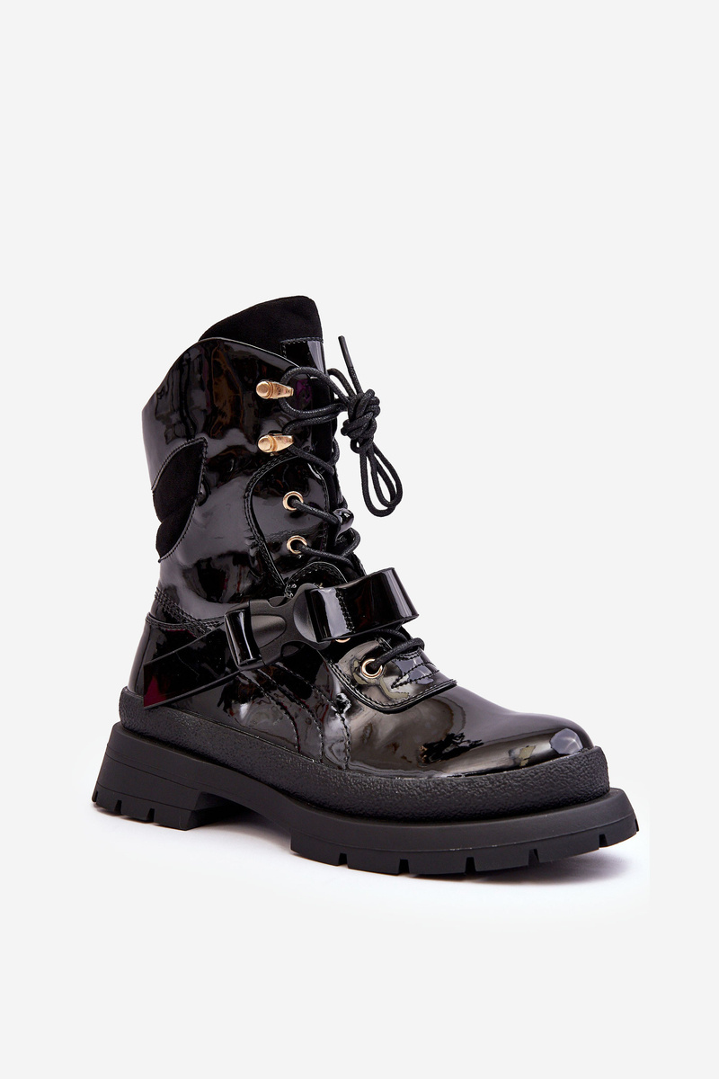 Women's Lacquered Platform Boots Nahili Black