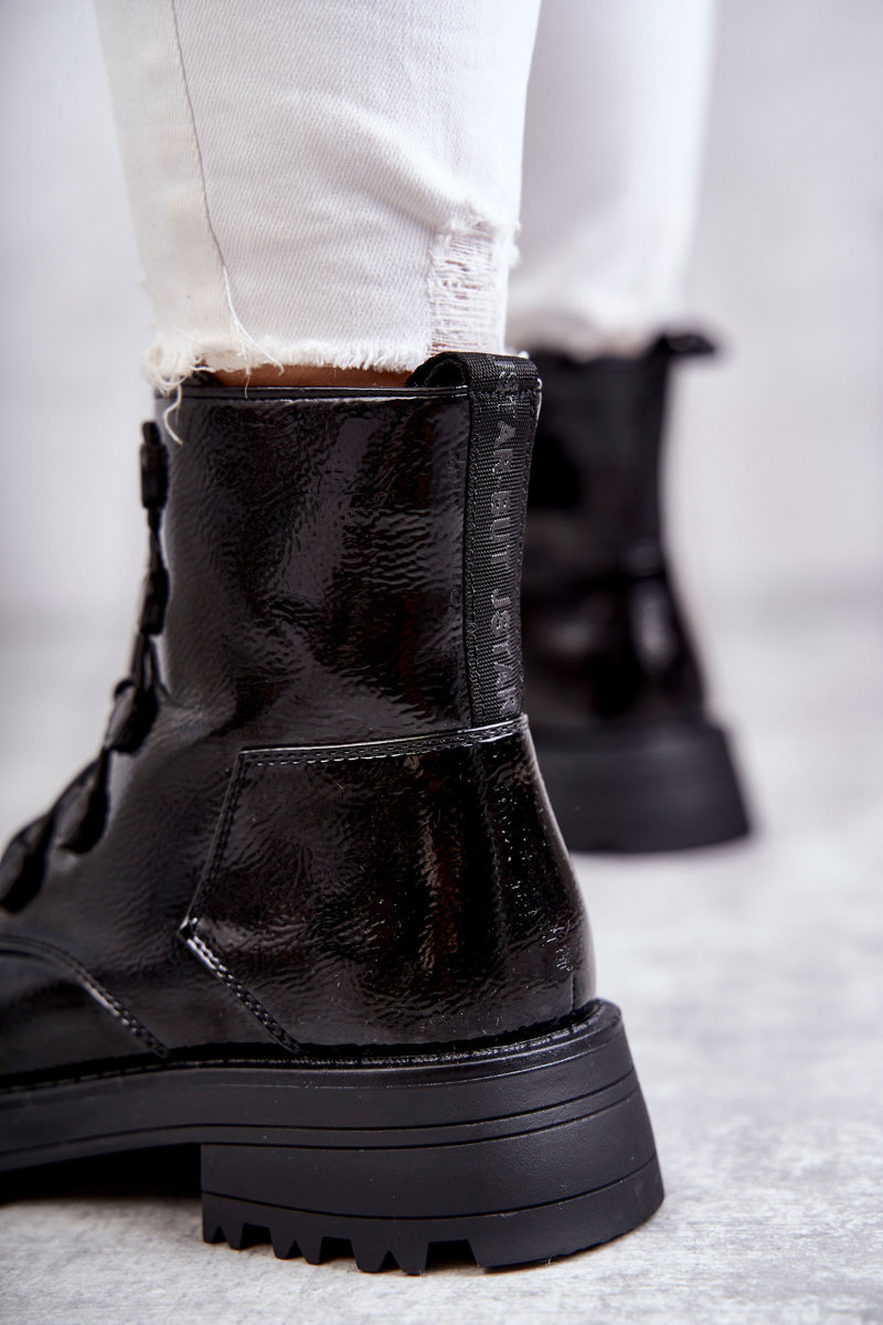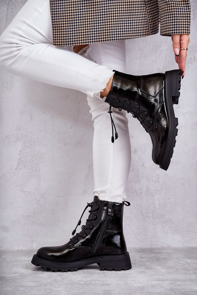 Women's Laquered Warm Boots With Ribbed Black Helia