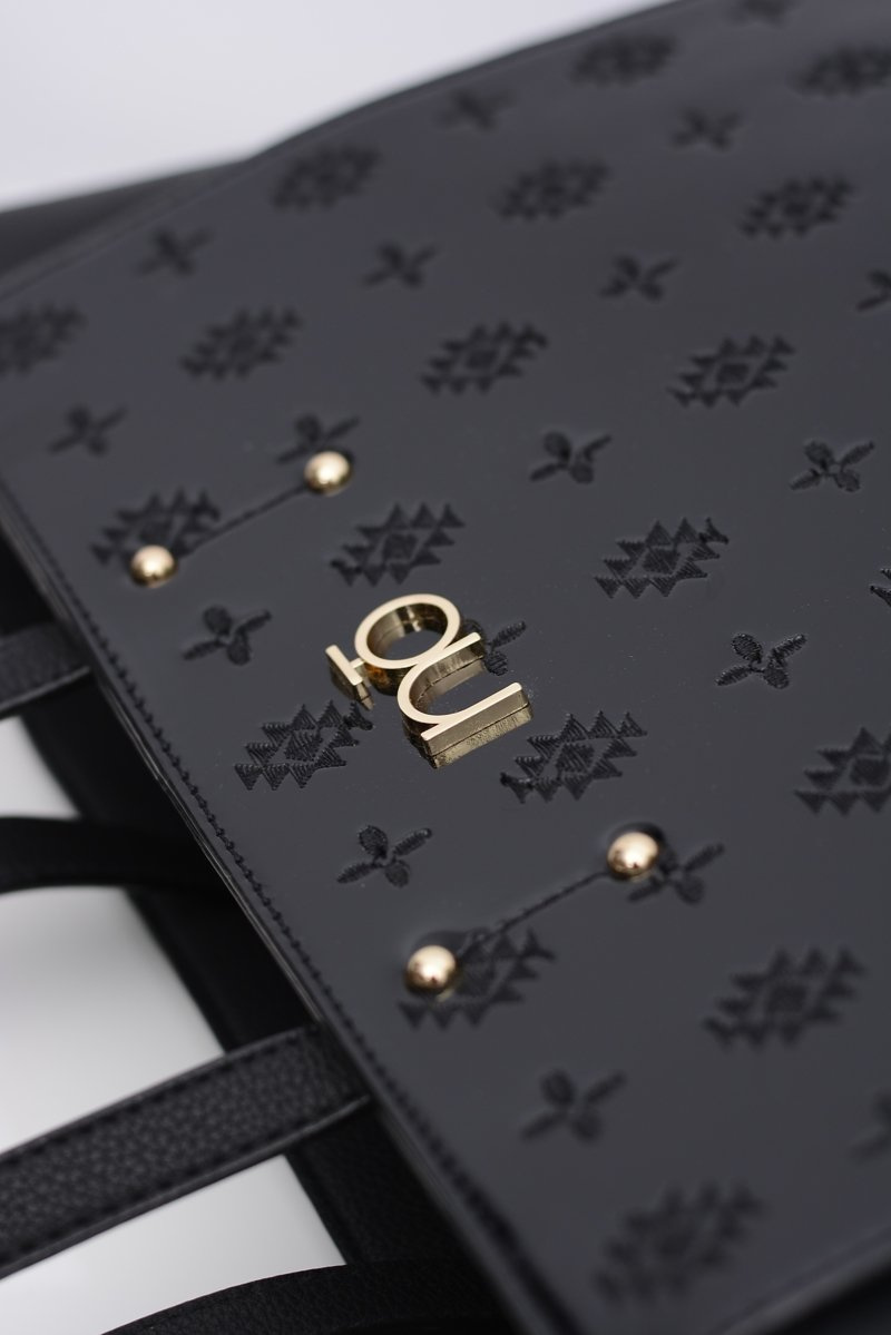 A large and capacious handbag will certainly come in handy for any woman. One large compartment with three small pockets including one zippered pocket. One additional pocket on the outside. The whole bag and the sides of the bag are zippered.