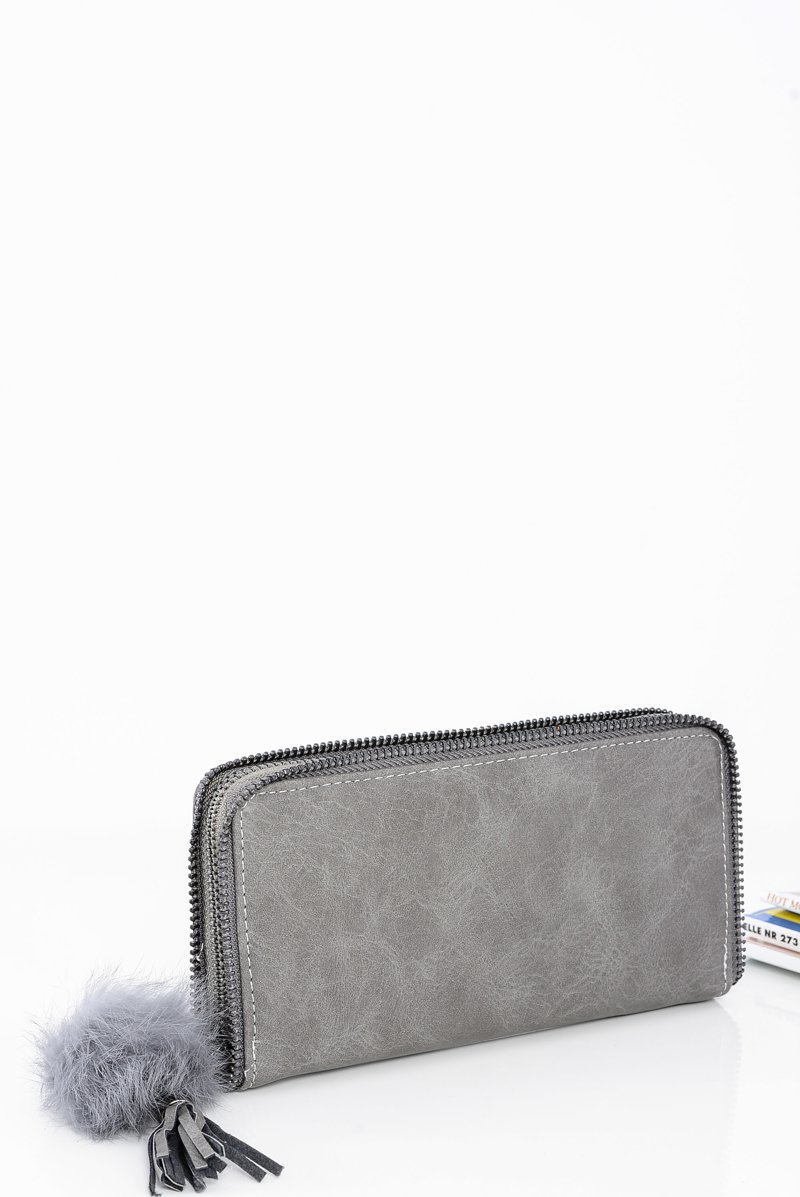 Women's Large Grey Wallet Ornamental Lock Keyring Pompon