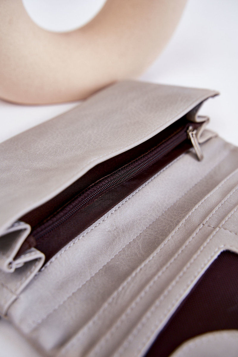 A classic, large women's wallet is made of eco leather. Closed with a magnet. The chamber has open pockets and one closed with a zipper. In addition, the wallet has a place for business cards, ID card, as well as a place for a photo. The pockets in the flap and on the back are closed with a zipper.