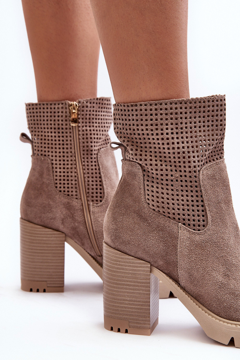 Women's Leather Aperture Ankle Boots Beige Lewski 3386