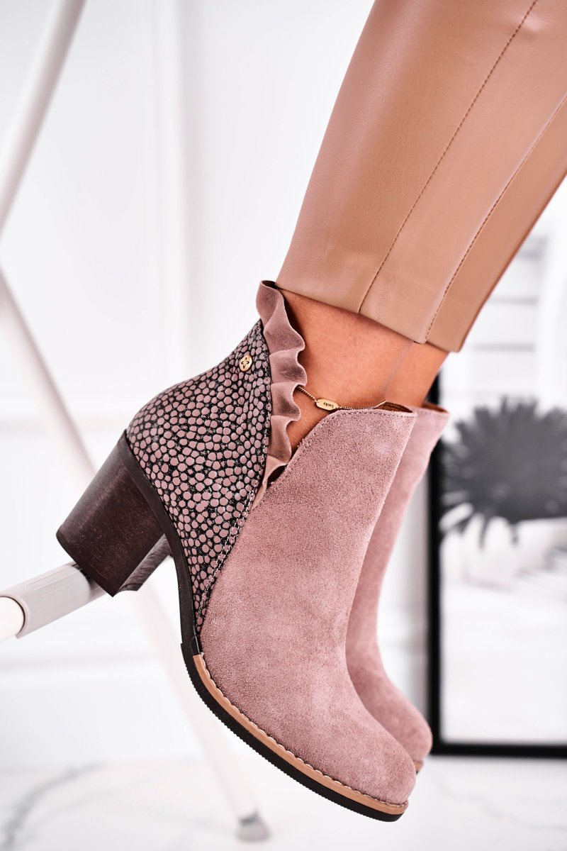 Beautiful, fashionable, eye-catching Maciejka's boots. The top is made of natural nubuck leather. The upper, decorated with an animal print, combined with a frill, creates an amazing combination. A stable heel will lift and emphasize your figure. A soft leather insole will ensure comfort at every step. When choosing a size, please use the size chart.