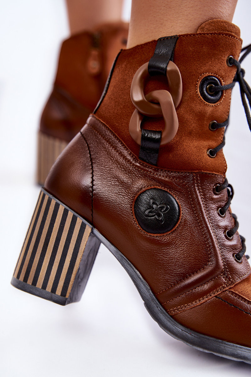 Unique Maciejka boots are made of high-quality leather with attention to detail. They have classic lacing and a zipper. They were decorated on the side with a chain and the Maciejka brand logo. Set on a heel in the form of a post. This model is perfect for people who love fashion news! Be sure to also check out the other models of Maciejka boots! When choosing a size, please use the size chart.
