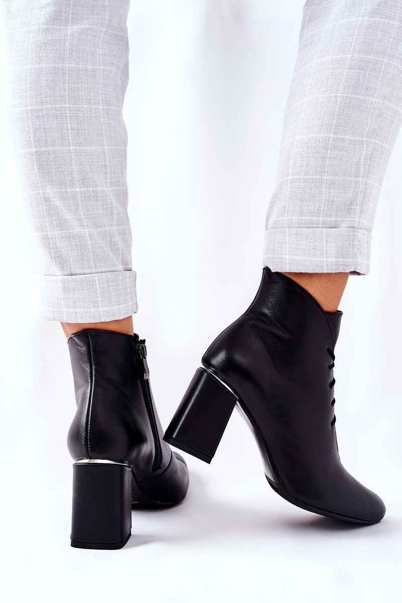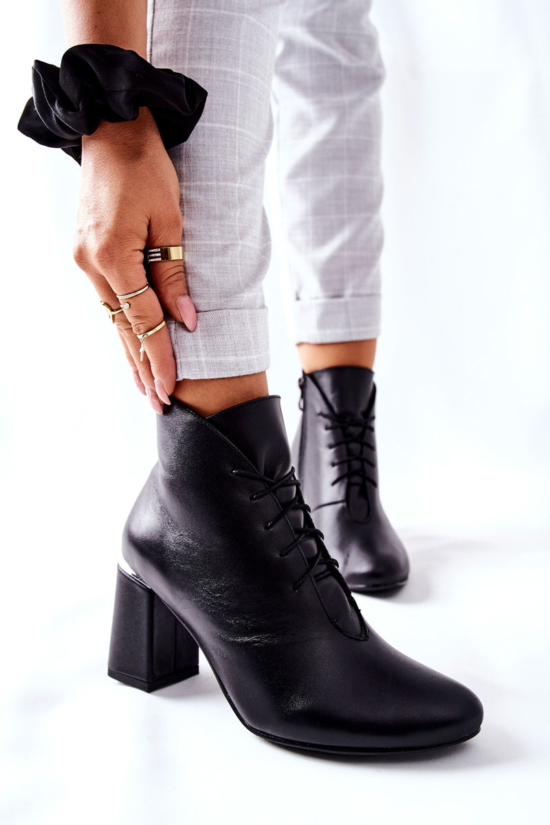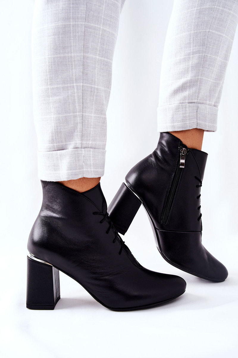 Classic boots, made entirely of top quality natural leather. The inside is insulated with a warm and nice-to-touch shoe blanket, which guarantees warmth on even the coldest day. Zipped and laced up. The cut on a delicate stiletto heel and a rounded nose.