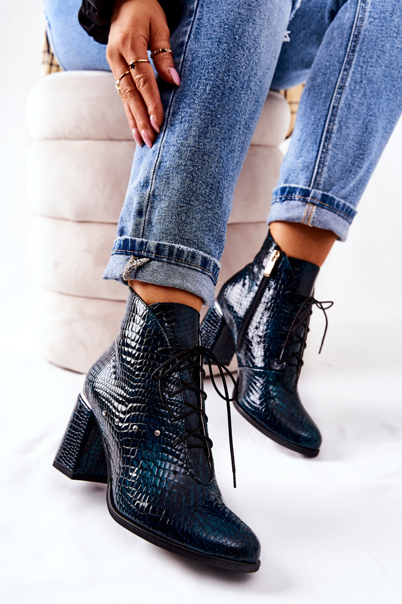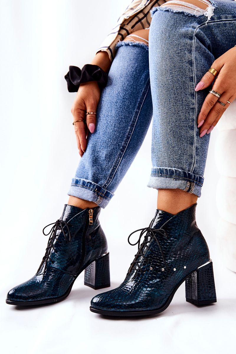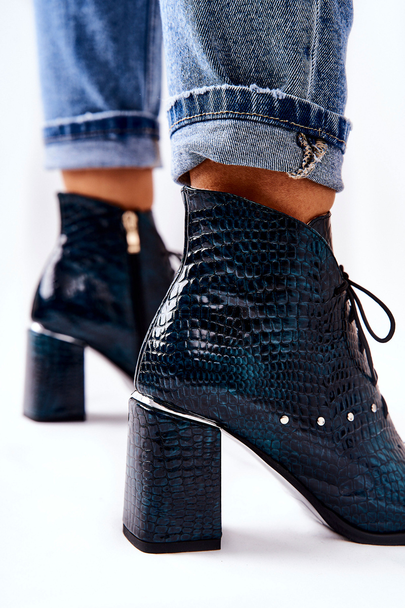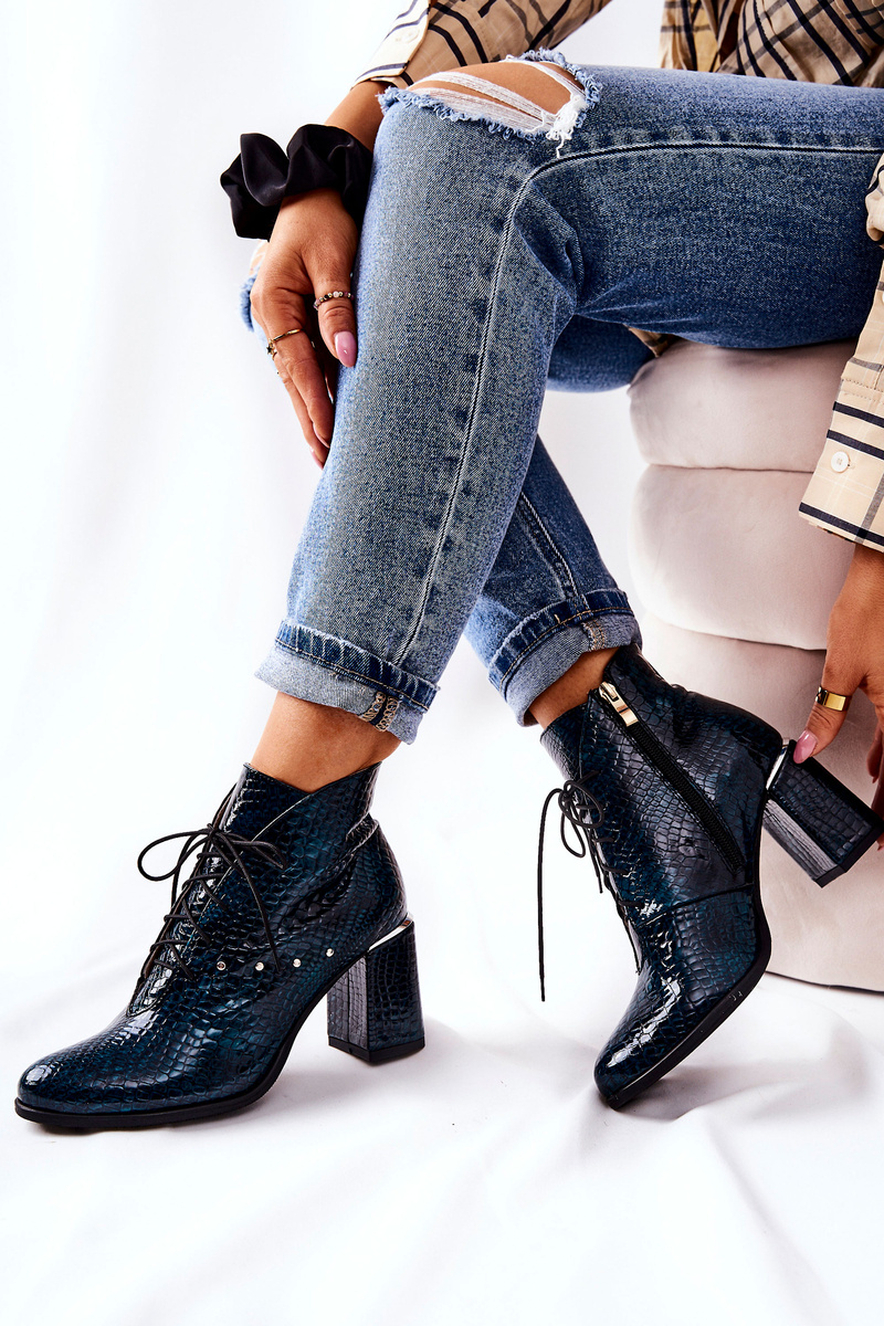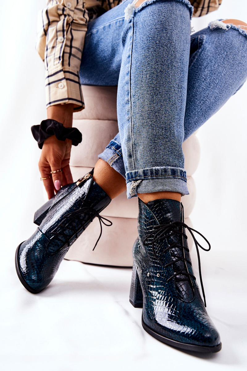 Women's Leather Boots On Heel Green Neliko