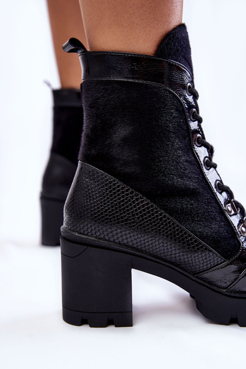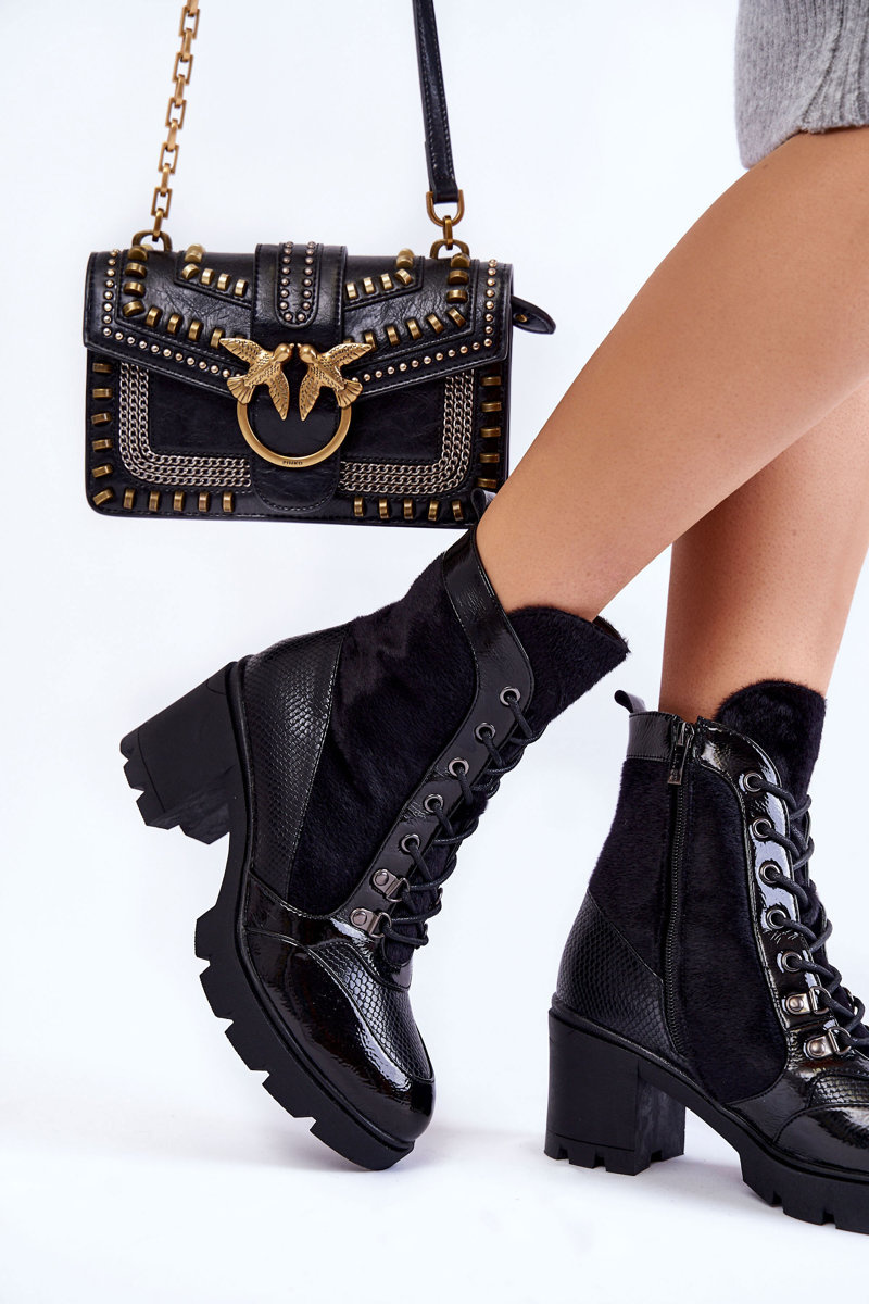 Laura Fiore boots will be perfect during the fall season. Made of high-quality eco leather in combination with a eko horsehair insert. The boots are mounted on a heel in the form of a post and a platform with grooves. Insulated inside with a delicate fur. This model has classic lacing and a zipper on the side of the upper. When choosing a size, please use the size chart.