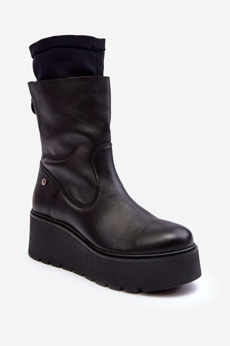Women's Leather Boots on Thick Platform Maciejka A7161-01 Black