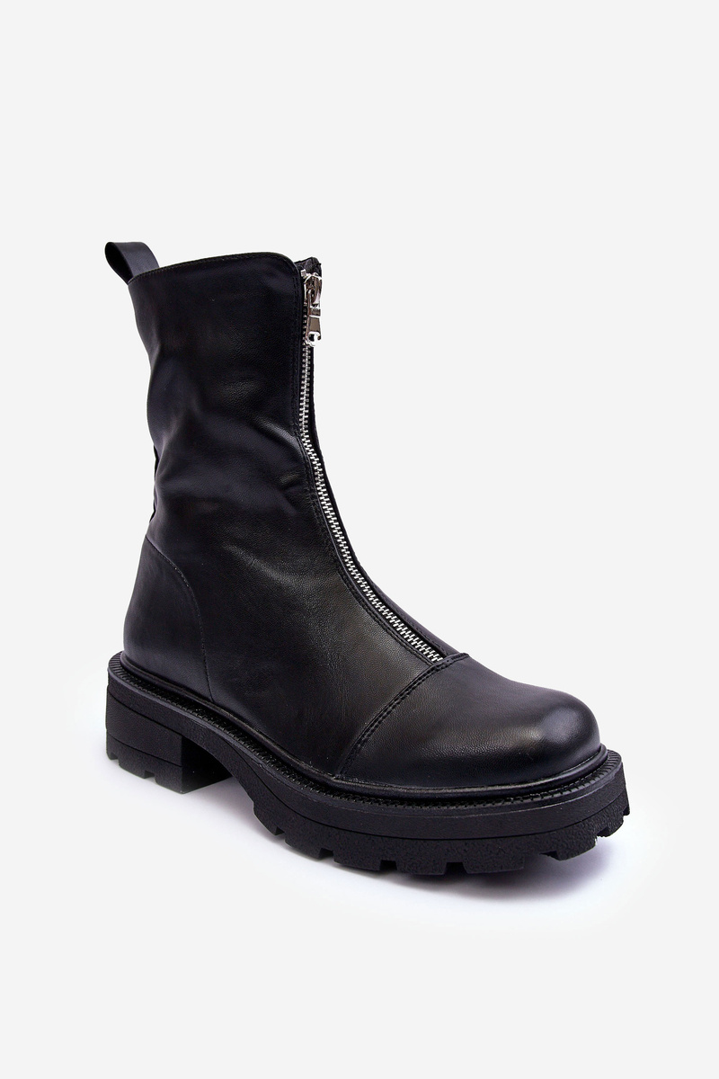Women's boots made of eco leather. Set on a flat, stable heel and thick sole. Fastened with a zipper in front of the upper. The toe is stiffened. This model will be the perfect completion of autumn outfits! When choosing a size, please refer to the size chart.