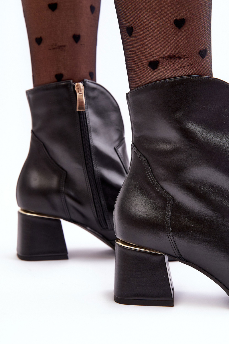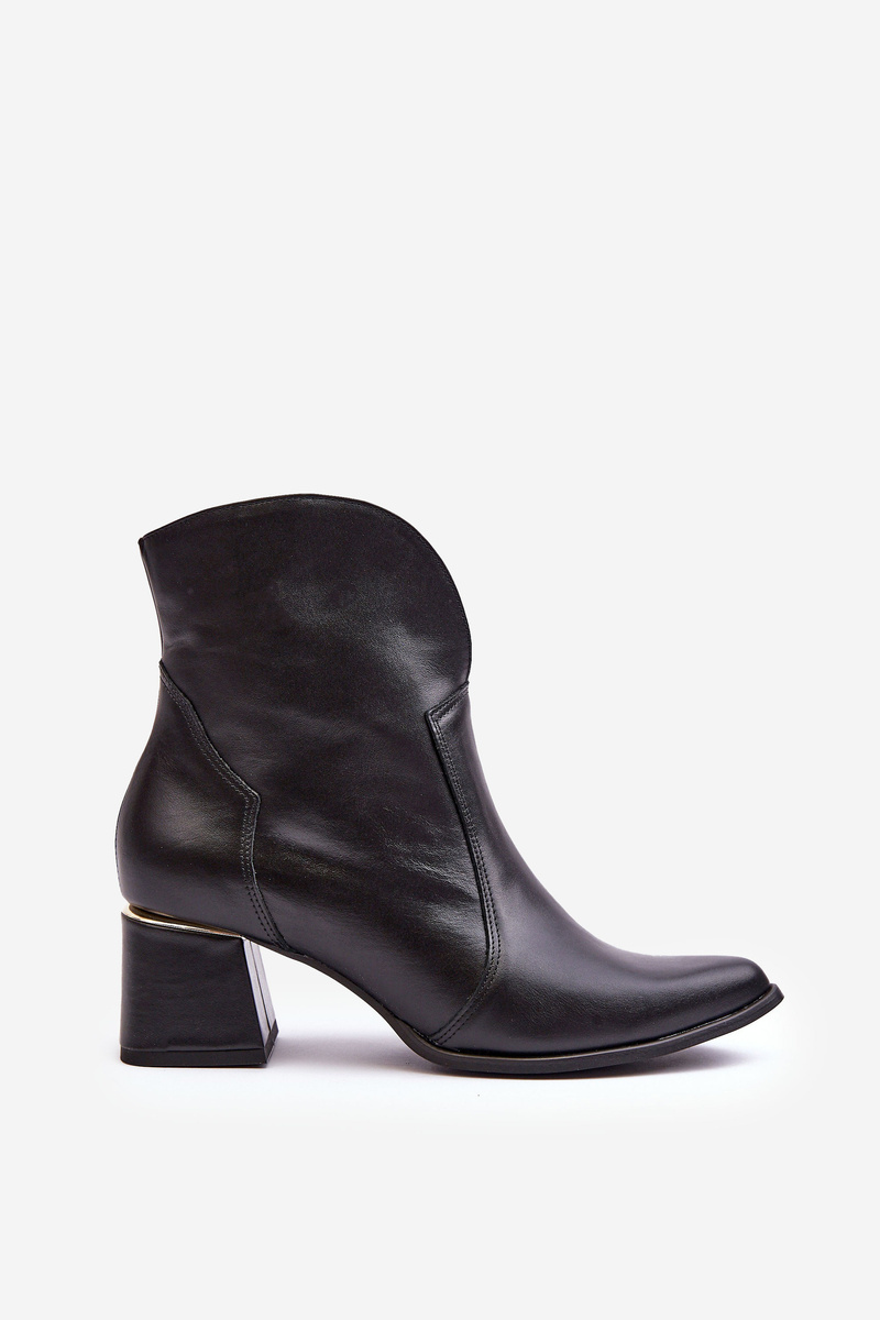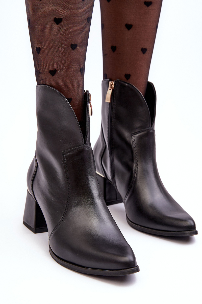 Women's boots made of natural leather. Set on a heel with a mirror element. Model fastened with a zipper on the side. Pointed toes optically slim the legs. The insole made of natural leather ensures comfort when using shoes. Boots are an indispensable element of autumn-winter styling. Be sure to check out the other models from Lewski brand! When choosing a size, please refer to the size chart.
