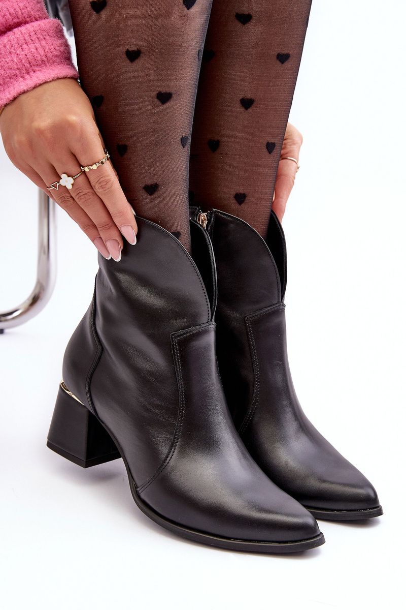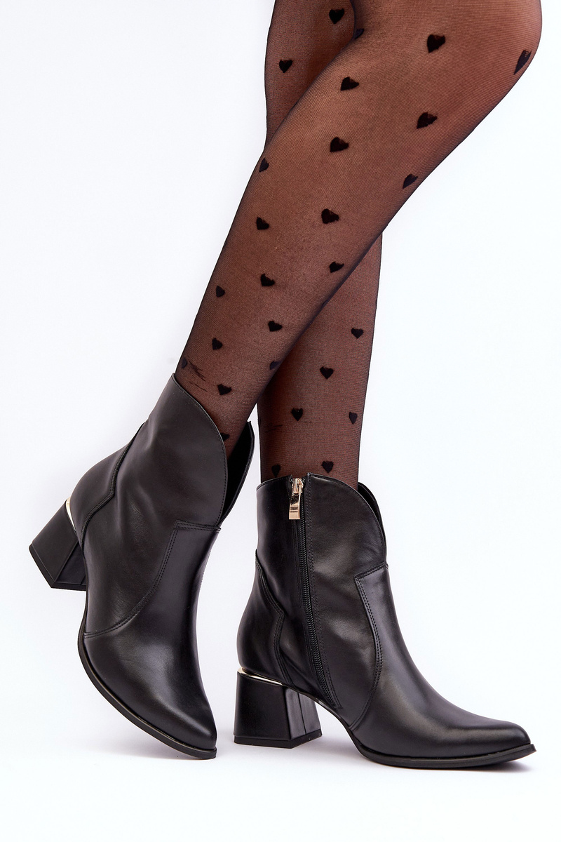 Women's Leather Cowboy Boots on Heel Black Lewski 3166/B/2