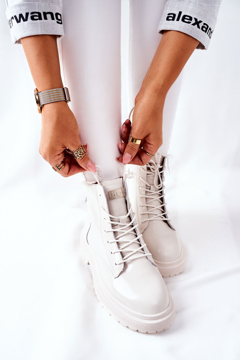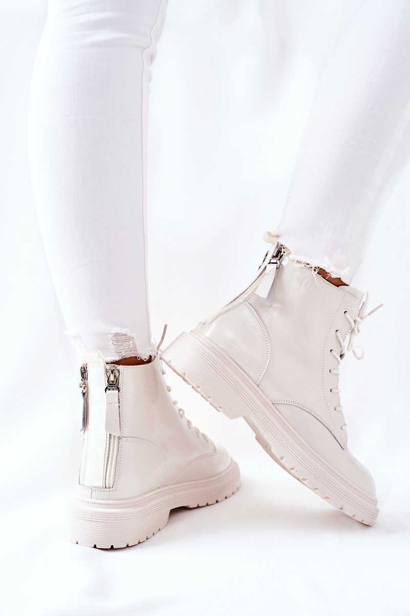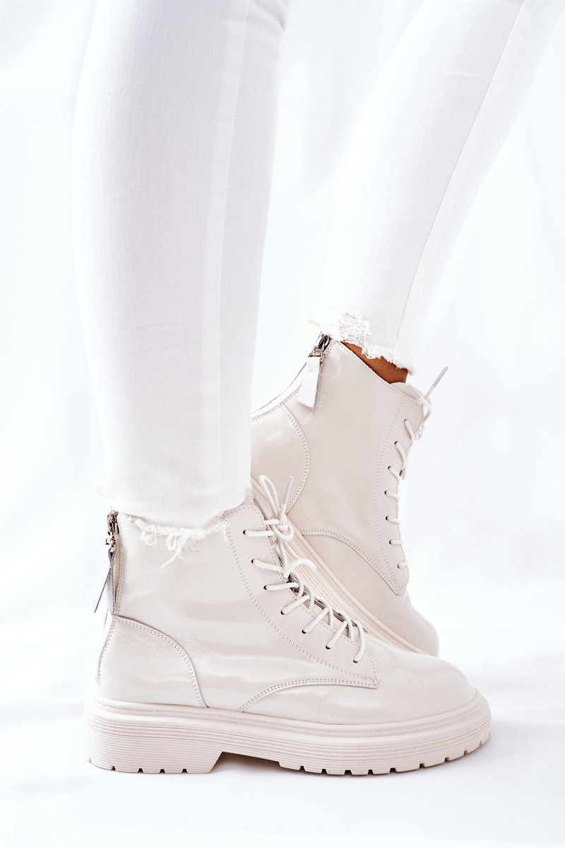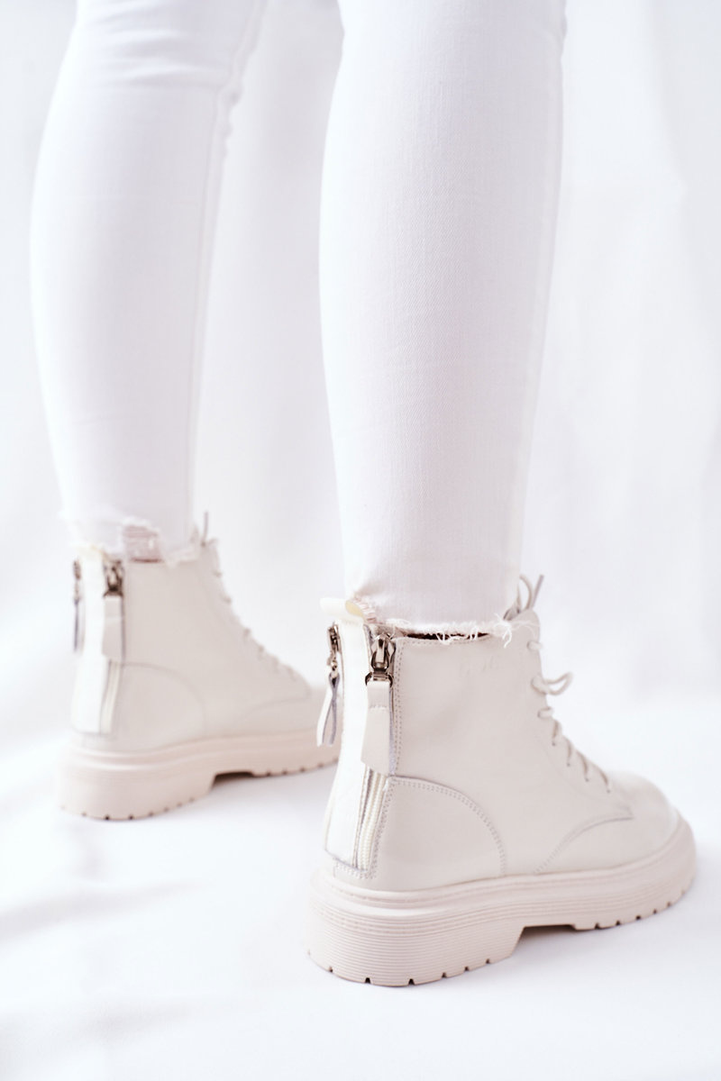 Amazing trappers from GOE brand are now available! The boots have been entirely made of natural leather. The sole is decorated with a silver insert, thanks to which creating a perfect styling with these boots is no problem. The inside has been gently insulated with shoe blanket. Putting them on will be easier with two zippers sewn on the back of the upper. When choosing the size, please refer to the size chart.