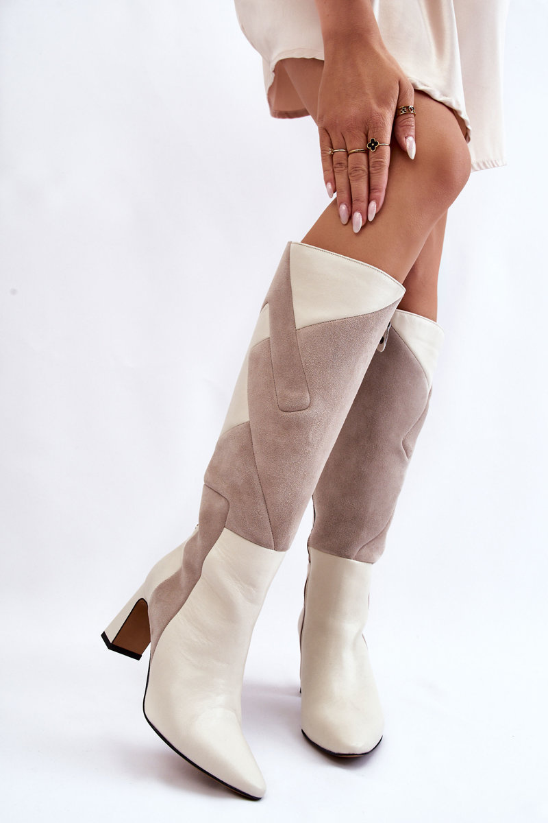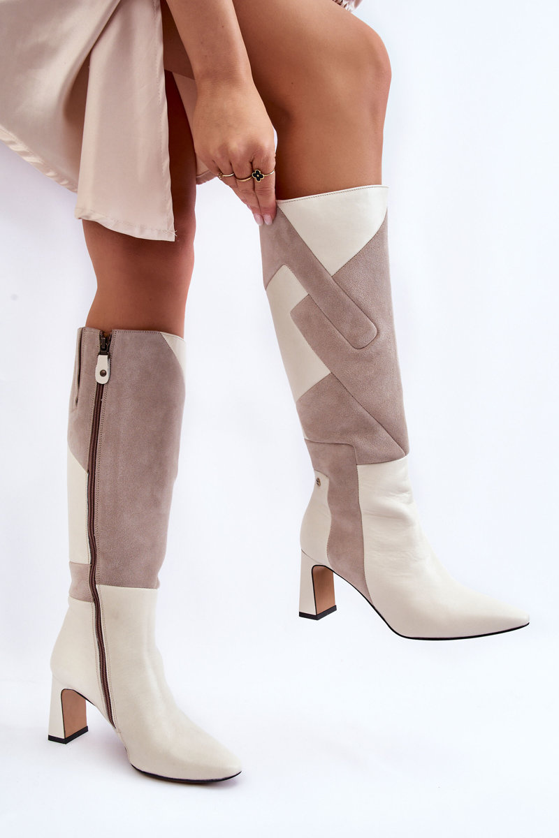 Women's Leather Knee Boots Maciejka 05784-22 Light Beige