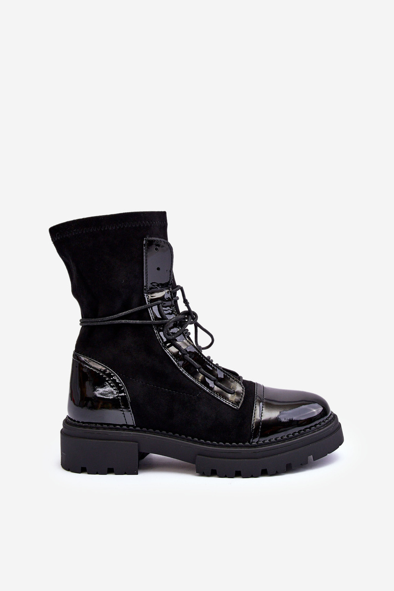 Slip-on boots made of a combination of eco suede and eco leather. Set on a flat, stable heel. The toe is stiffened. The unique style will delight many fashion lovers! When choosing a size, please refer to the size chart.