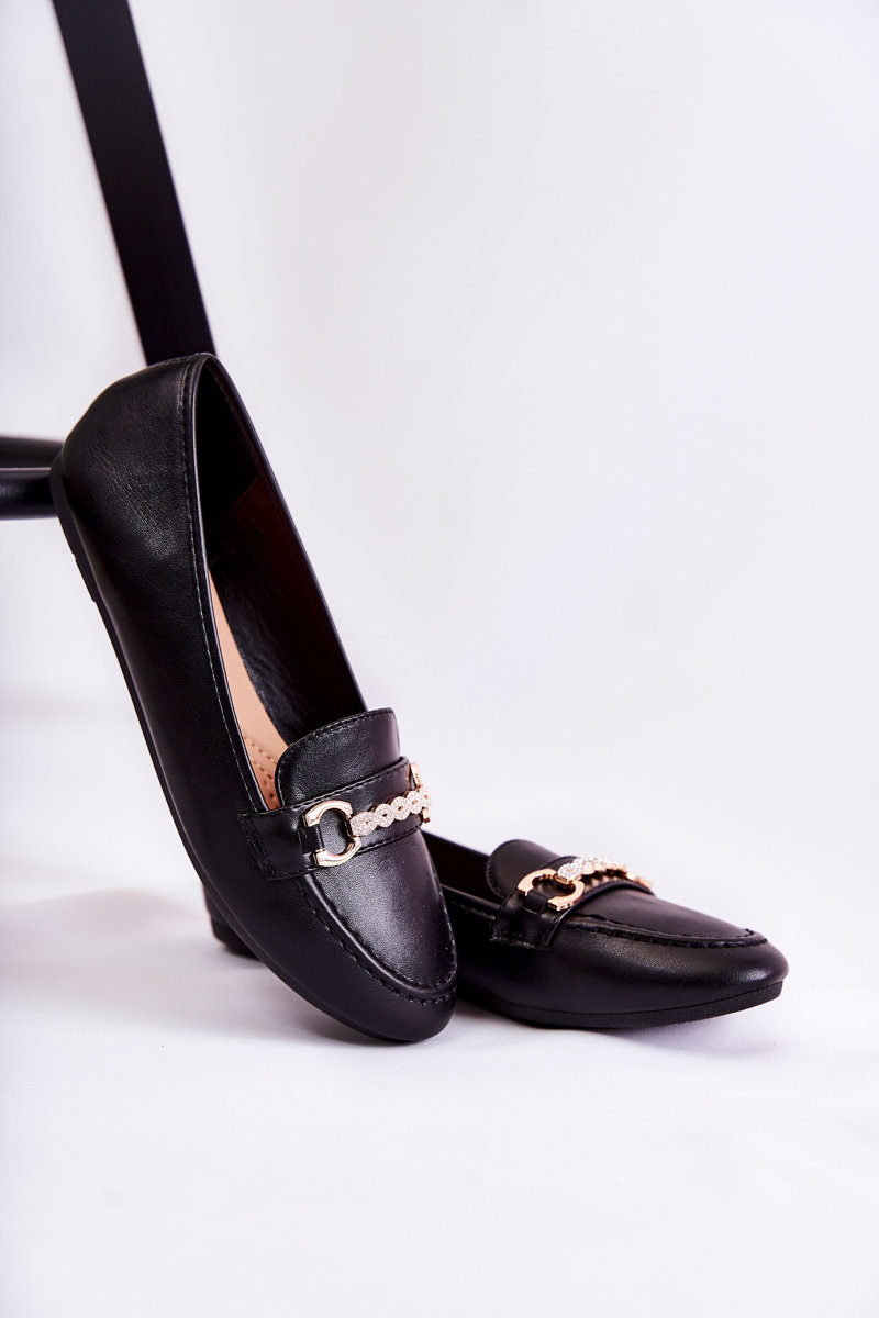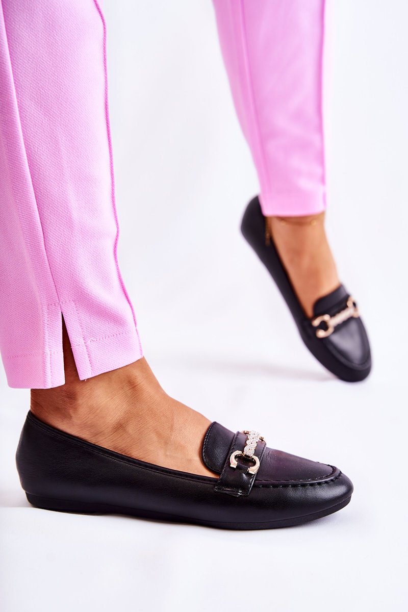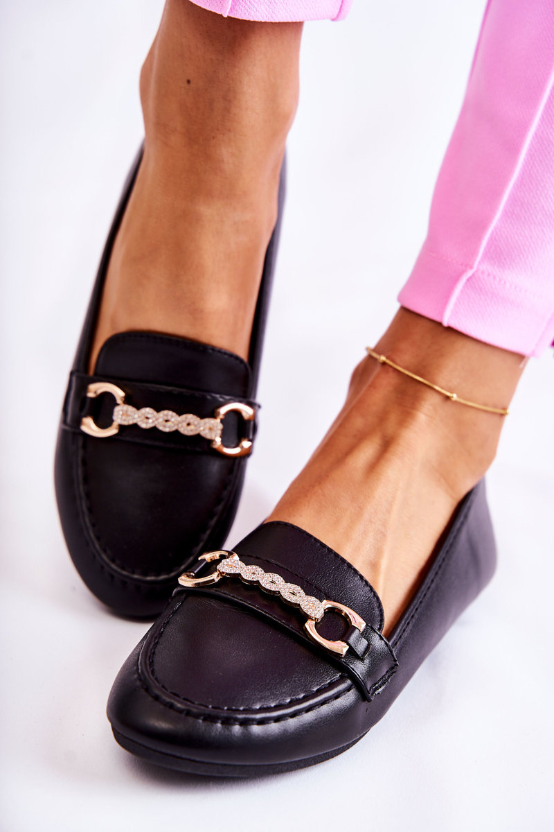 Elegant moccasins mounted on a flat heel. They were made of high-quality eco leather with attention to every detail. A soft insert with perforation will take care of your comfort during use. Moccasins will work in many styles. On the front there is a decorative element with rhinestones imitating rhinestones. Rounded nose. When choosing a size, please use the size chart.