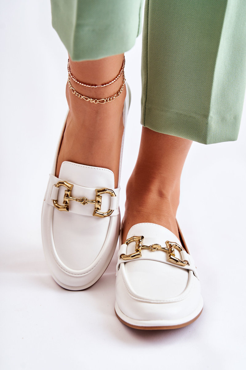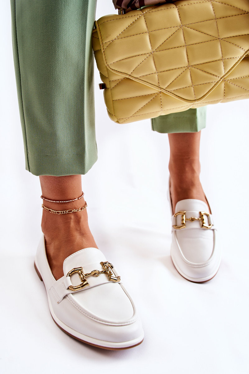 Fashionable women's loafers will be perfect for the spring and summer season! You will use this model in many situations - at work, for a meeting with friends or for a walk. A soft eco-leather insole will take care of your comfort during use. On the front there is a decorative element made of plastic. Rounded nose. Shoes mounted on a flat heel. When choosing a size, please use the size chart.