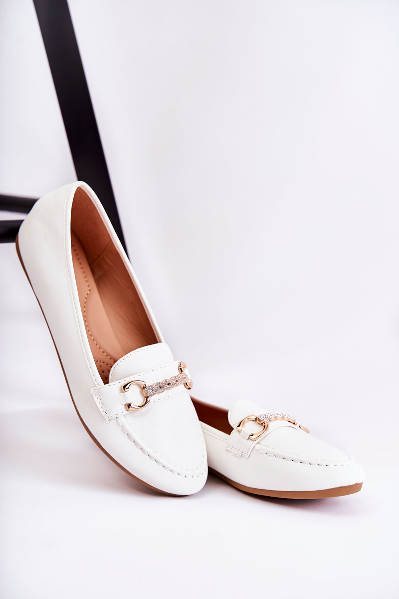 Elegant moccasins mounted on a flat heel. They were made of high-quality eco leather with attention to every detail. A soft insert with perforation will take care of your comfort during use. Moccasins will work in many styles. On the front there is a decorative element with rhinestones imitating rhinestones. Rounded nose. When choosing a size, please use the size chart.