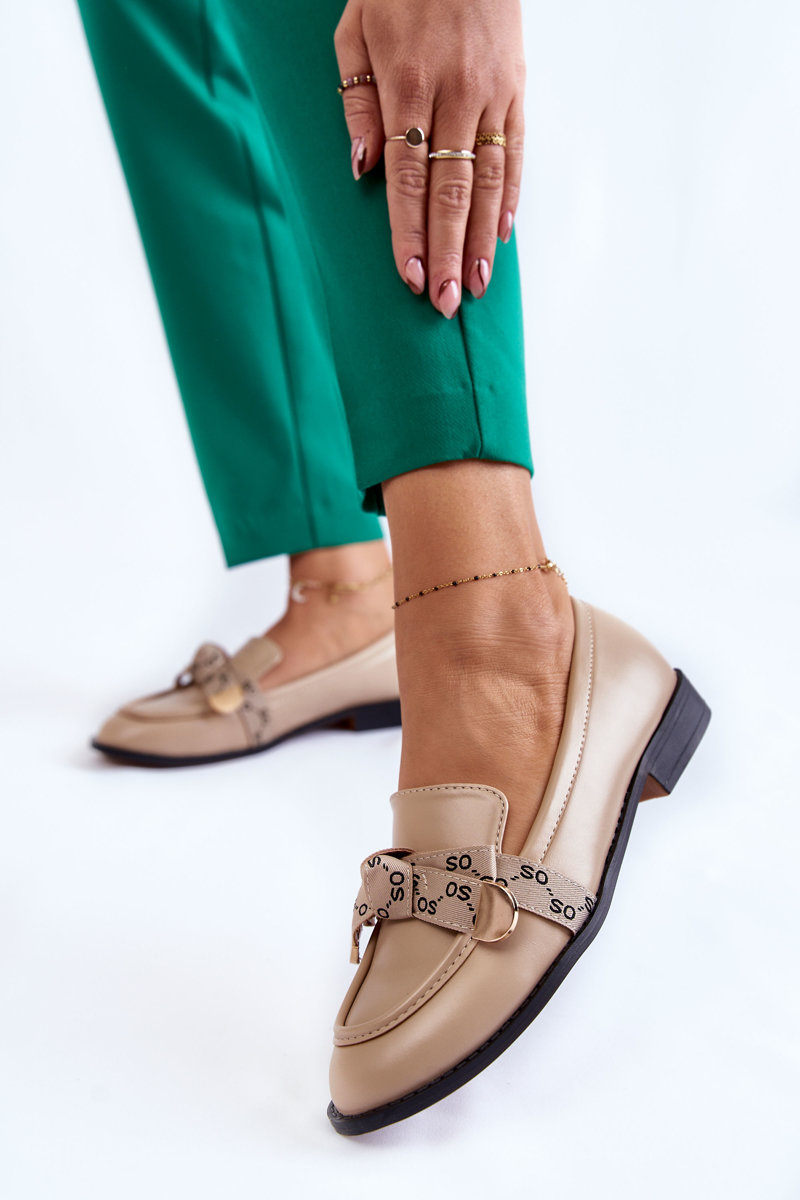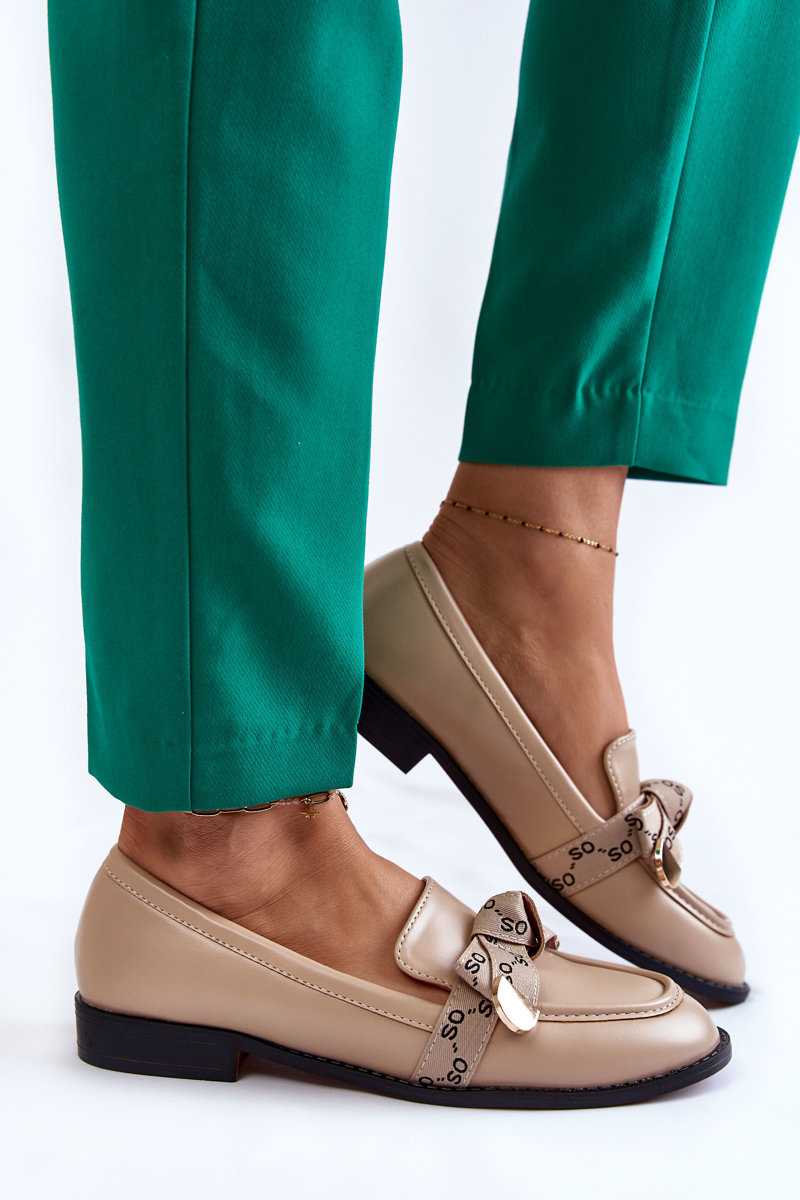 Women's Leather Loafers With Bow Beige Dayes