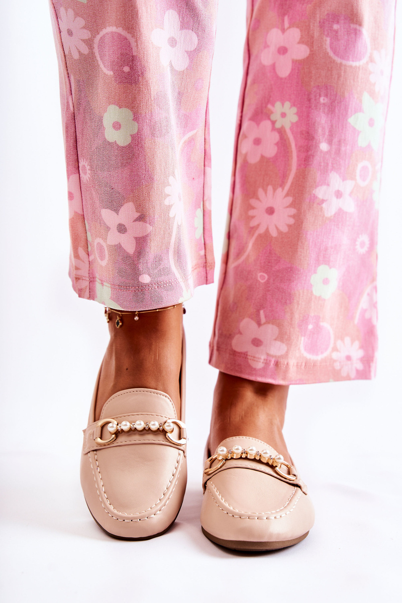 Women's Leather Loafers With Decorative Pearls Beige Sergia