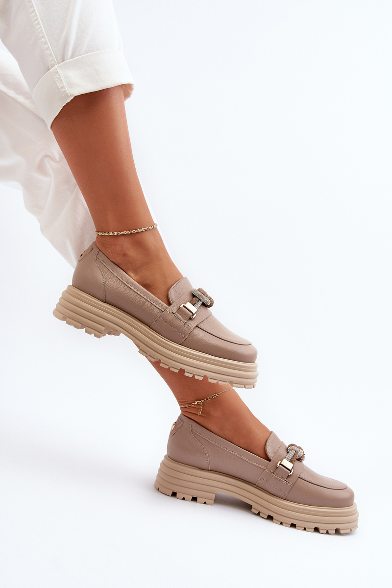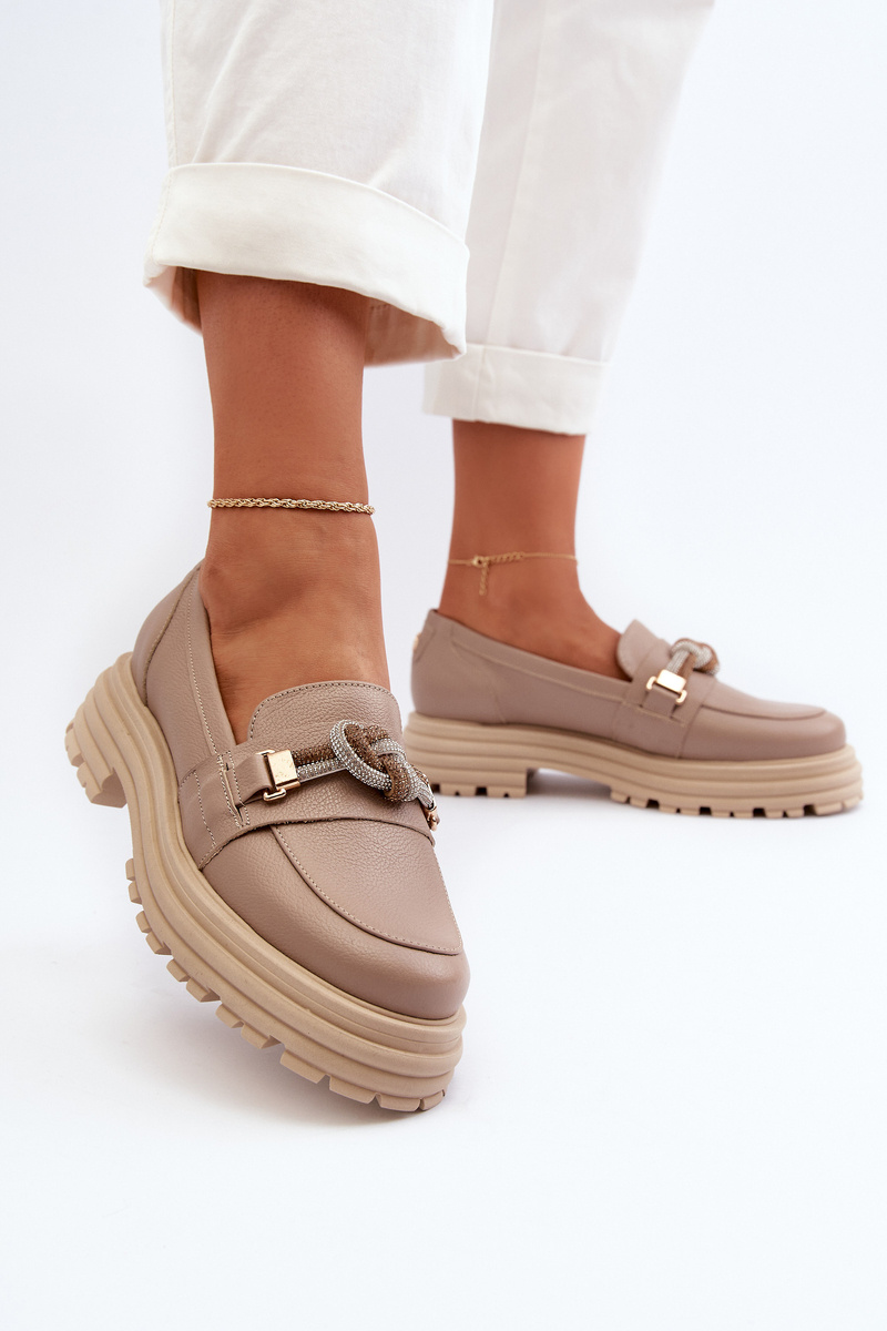 Women's Leather Moccasins with Decoration Laura Messi 2780 Dark Beige