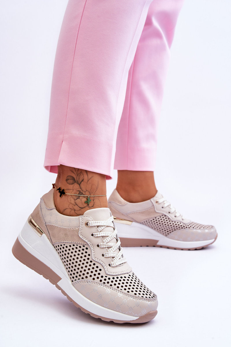 Women's Leather Openwork Sneakers Light Beige Virginia