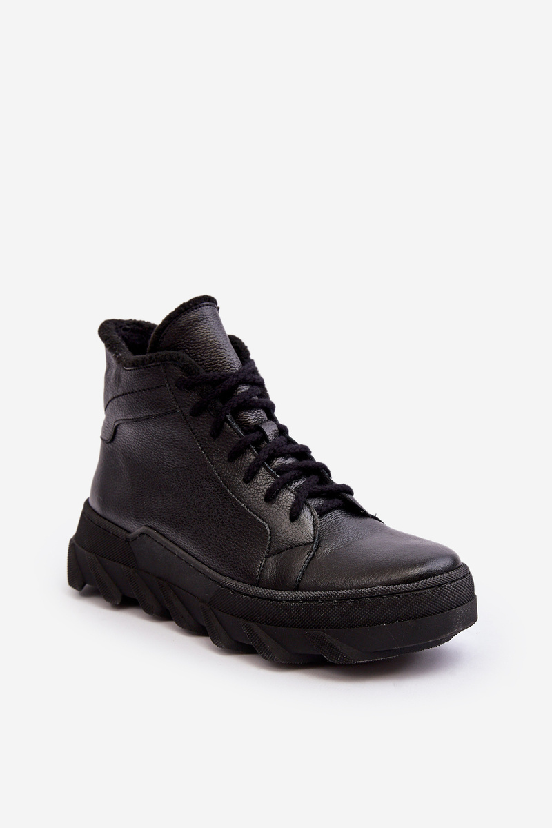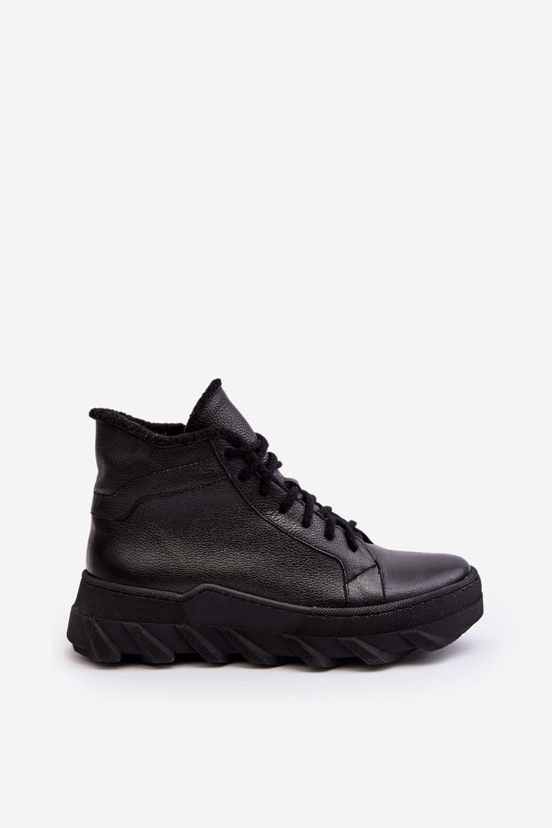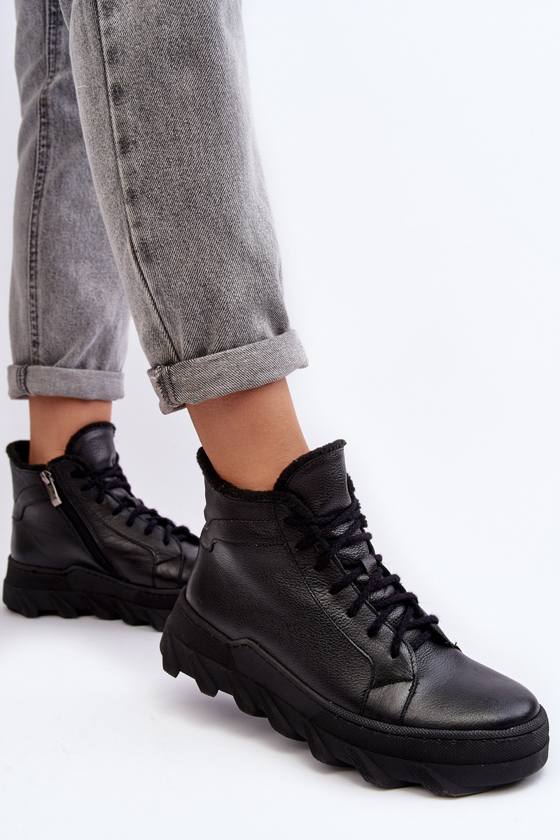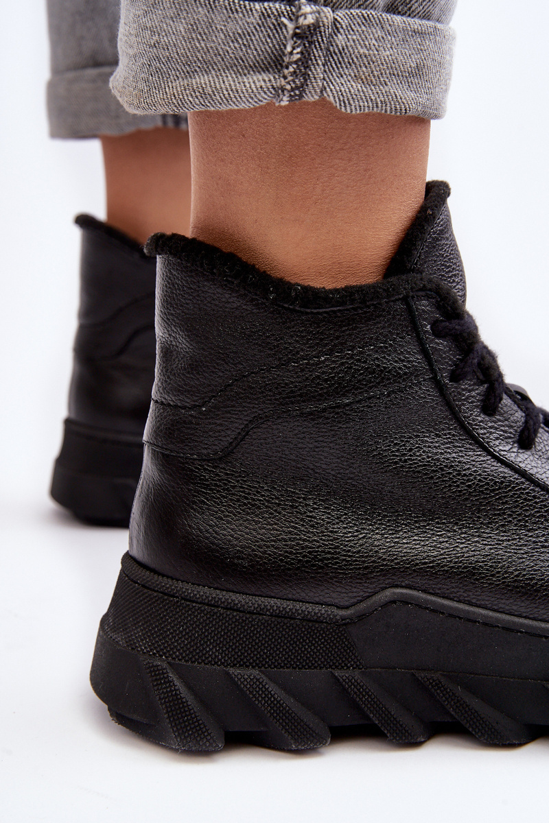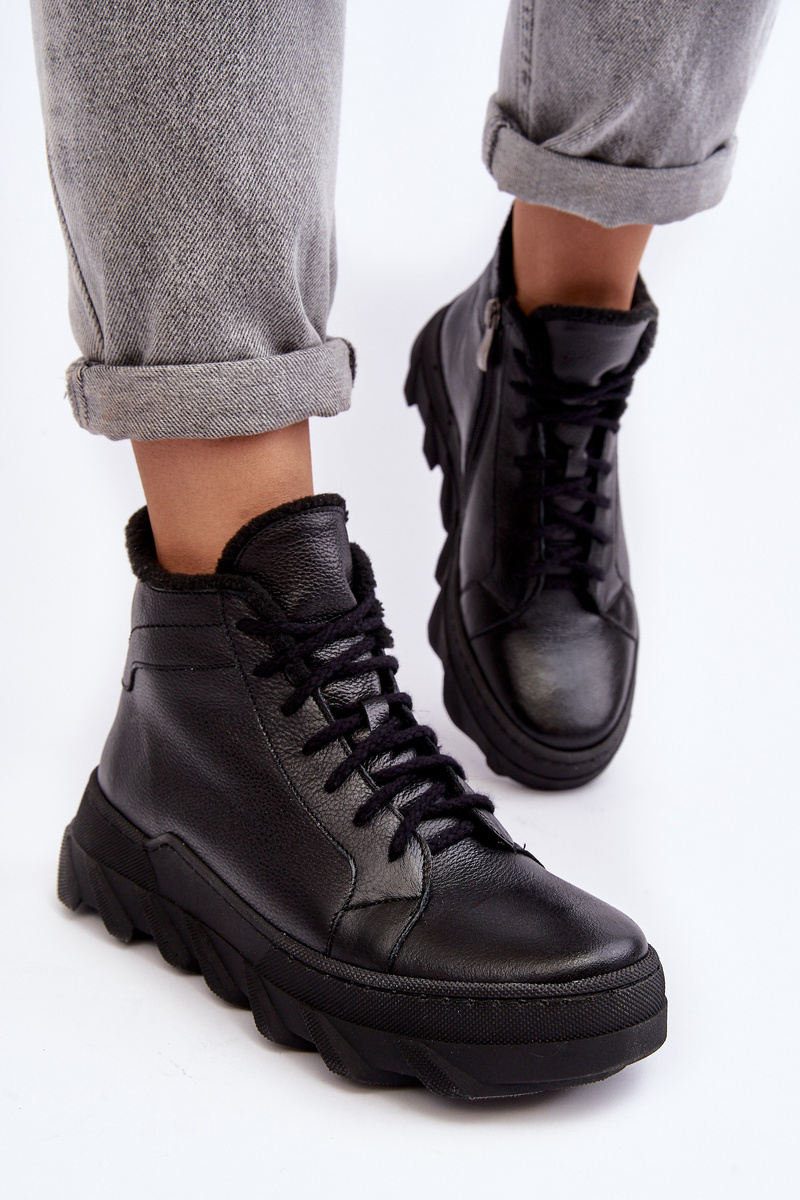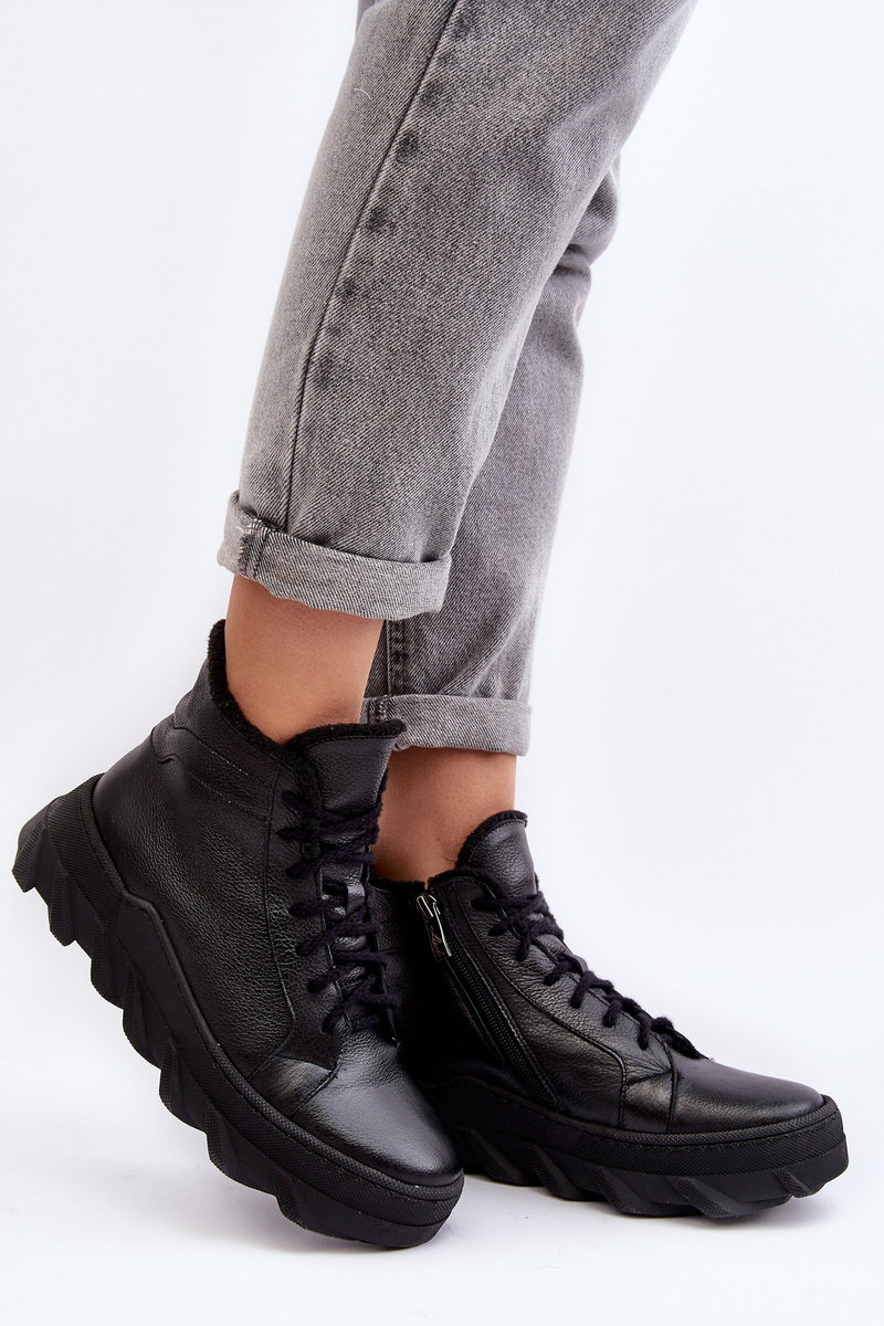 Women's Leather Platform Boots with Fleece Lining Black Lemar Jevette