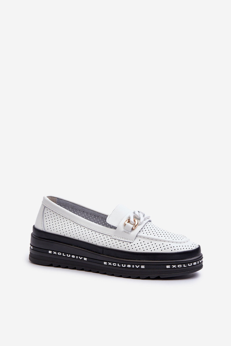 Women's Leather Platform Loafers with Chain S.Barski LR618 White