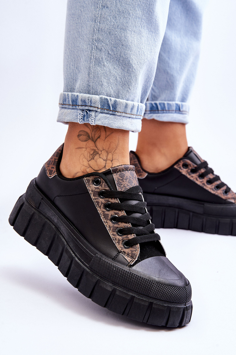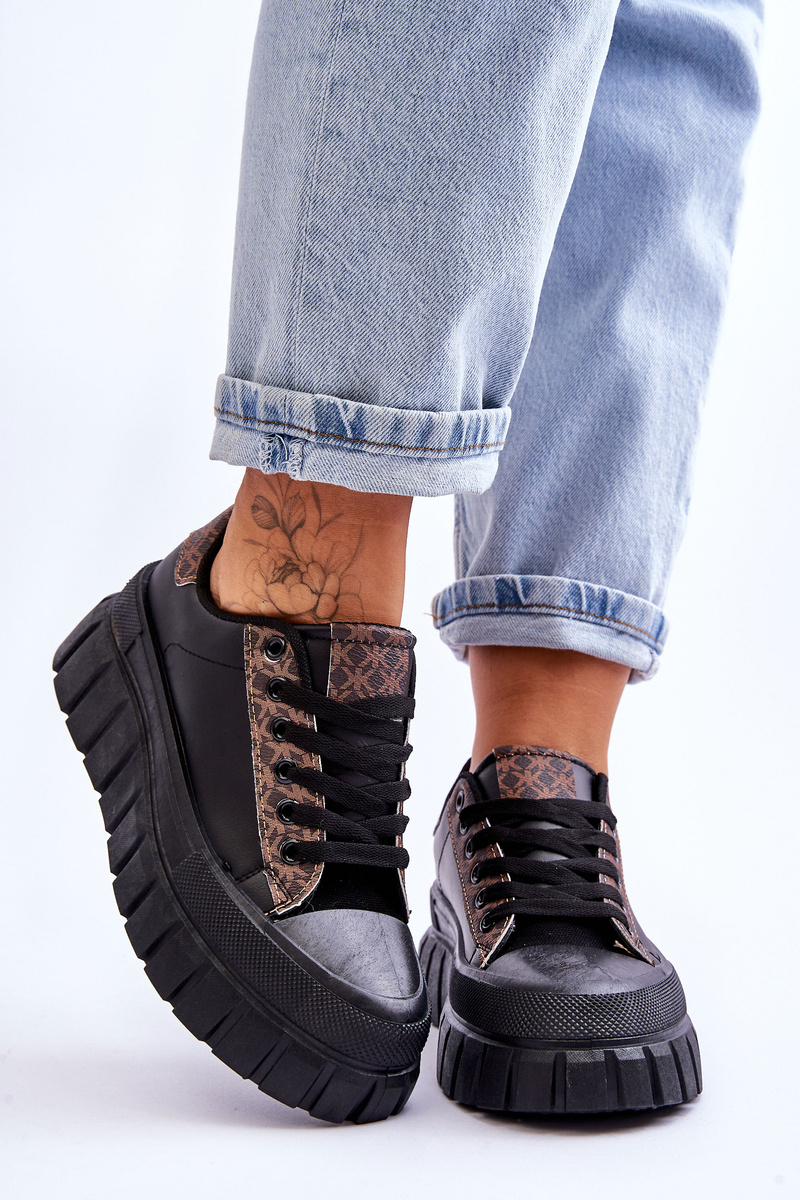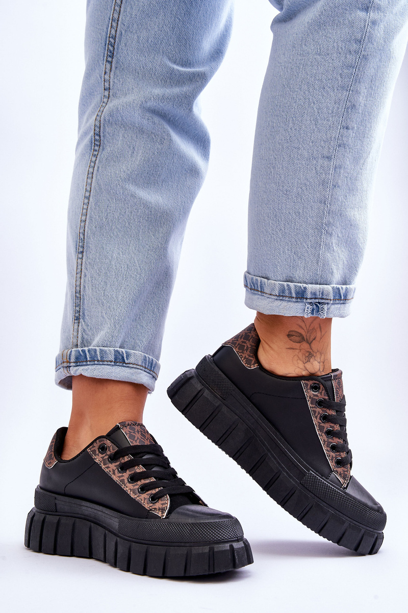 Comfortable, sports shoes are made of eco leather with a fashionable pattern. Lace-up design. The shoes were mounted on a massive platform made of plastic. The soft insole made of material will ensure comfortable use. Rounded nose. This model fits many sports styles. When choosing a size, please refer to the size chart.