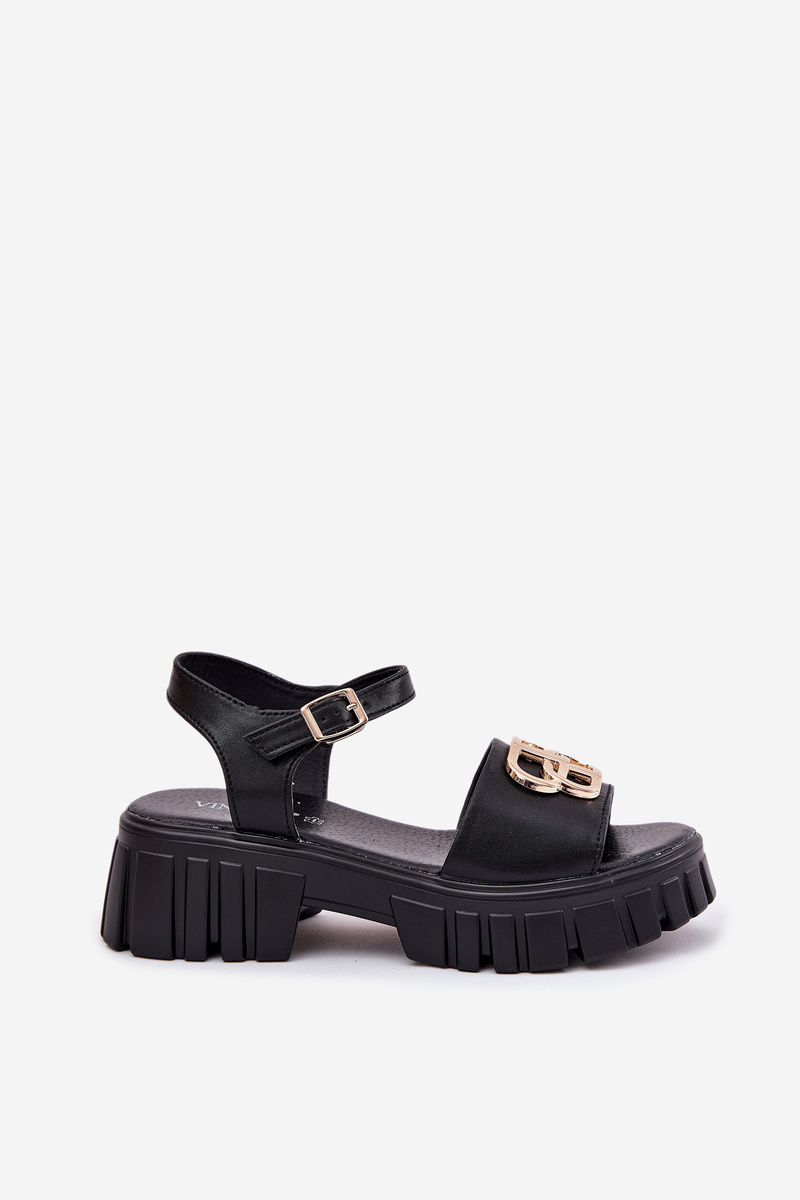 Women's Leather Sandals With Gold Detail Vinceza 79541 Black