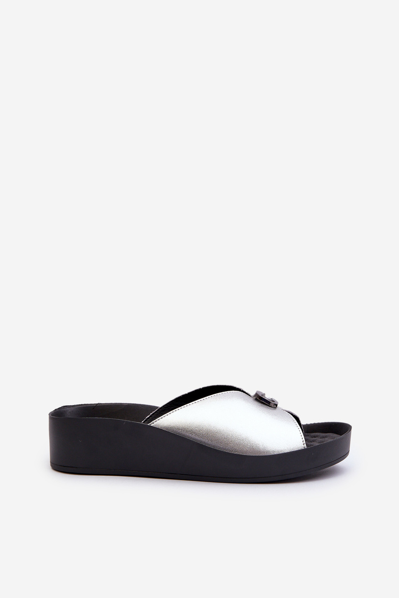Elegant women's slippers from the S.Barski brand. Made of natural leather. Small detail on the front. Low wedge heel will work perfectly in everyday stylings. You definitely should have them in your summer wardrobe! When choosing a size, please refer to the size chart.
