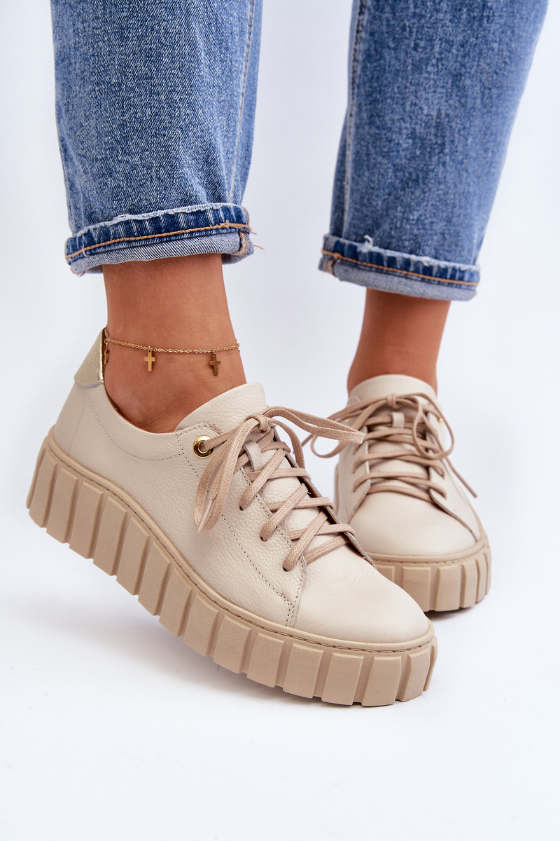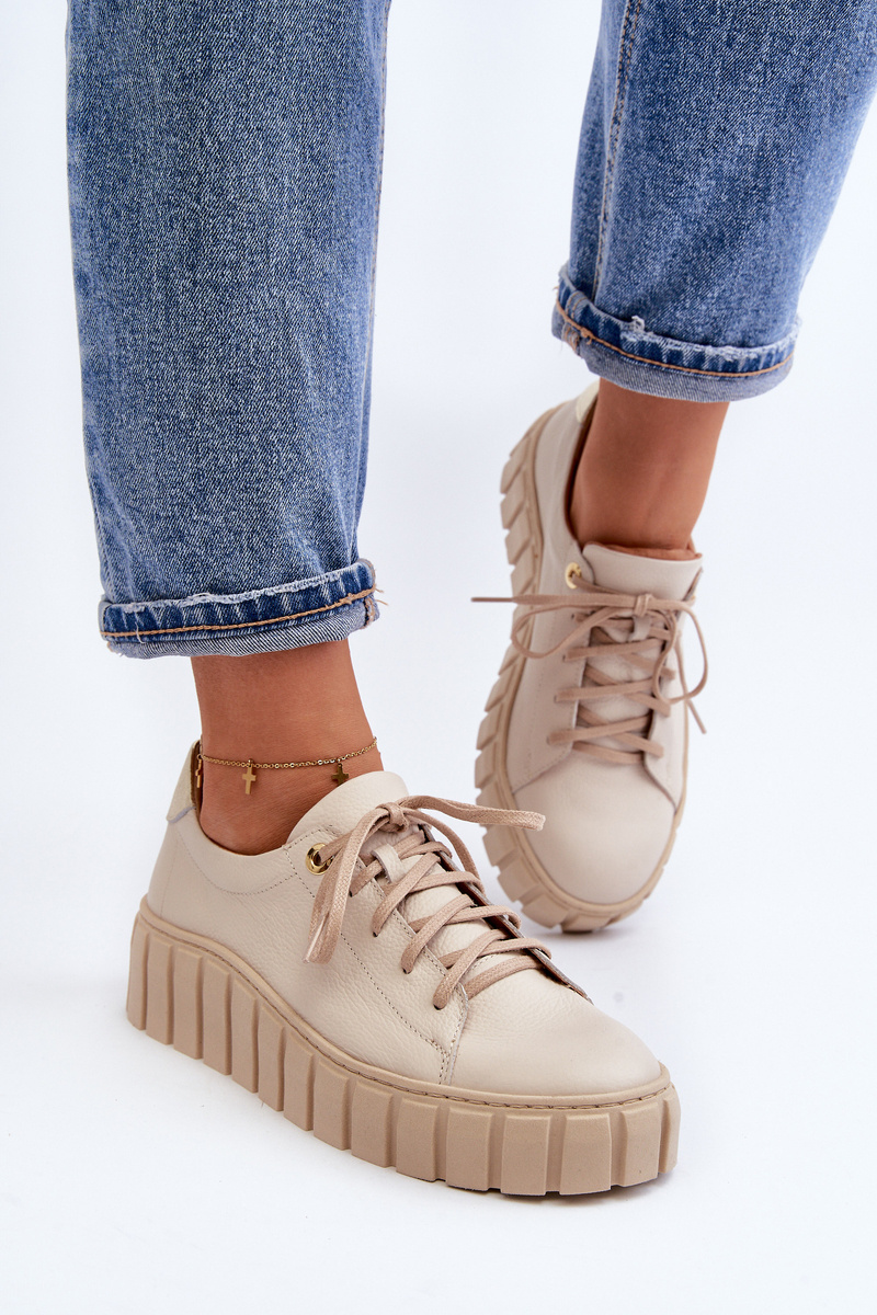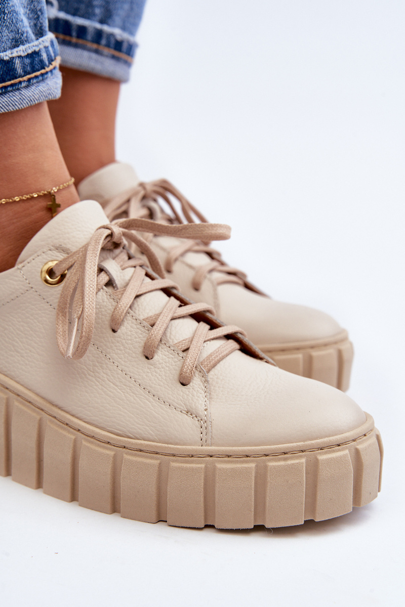 Women's Leather Shoes with Thick Sole Zazoo 2919 Beige
