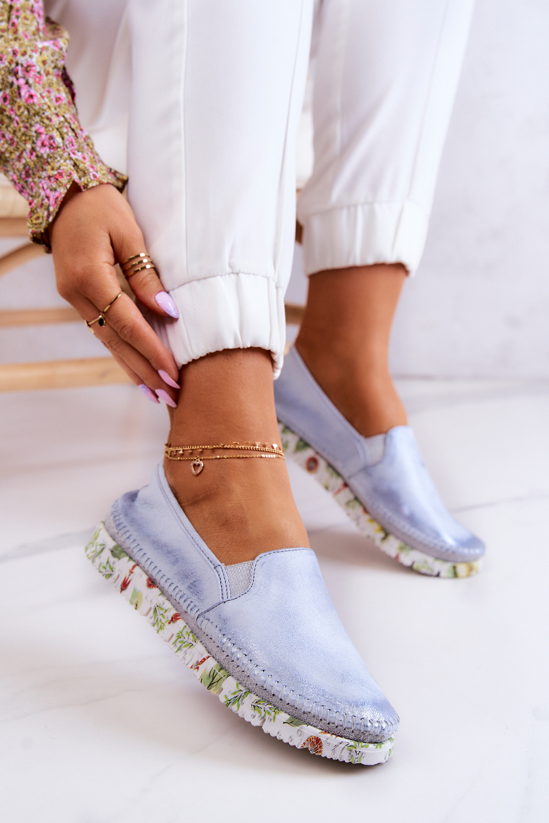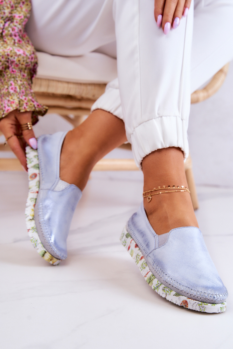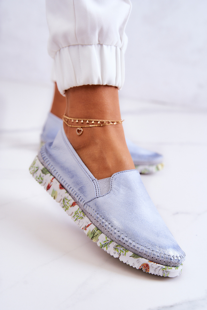 Women's Leather Slip-On Shoes Maciejka 03512-40 Light blue