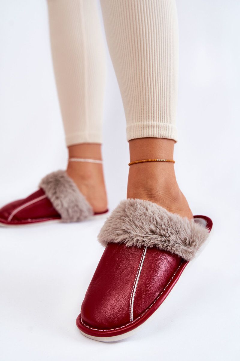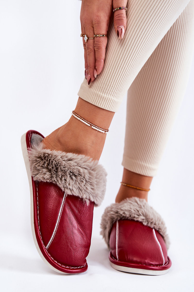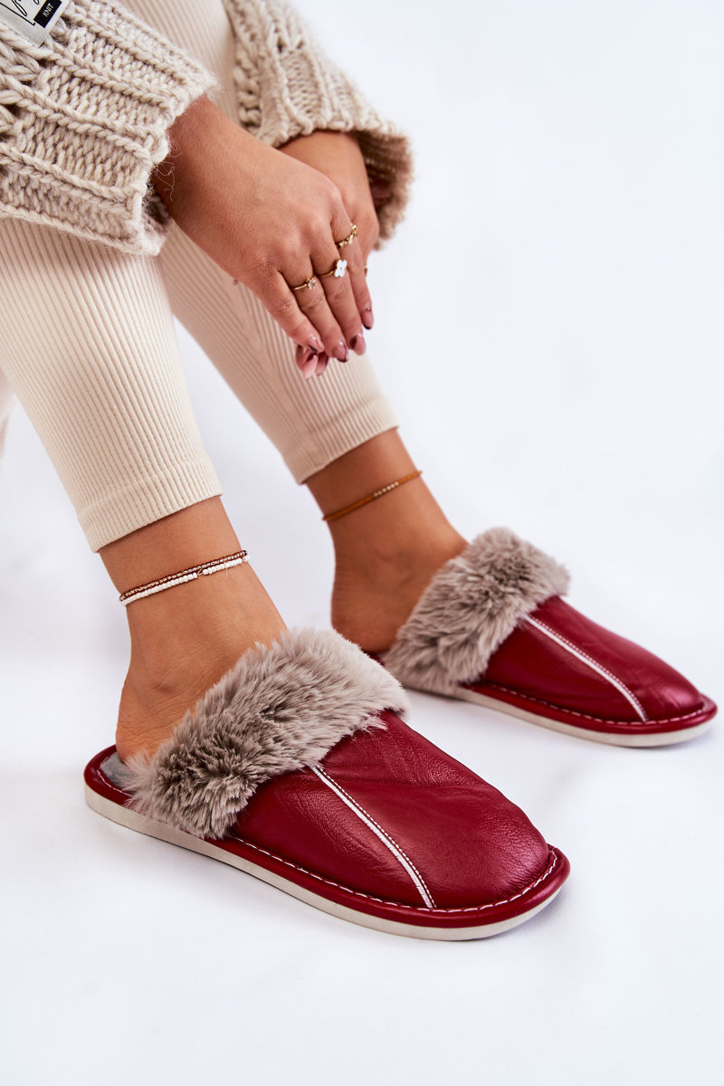 Women's slippers are made of eco leather top with eco fur trim. Additionally, they have stitching on the front. The soft insole is also insulated and will provide comfort and convenience during use. The sole is made of flexible material. Classic, slip-on model. You absolutely should have them! When choosing a size, please use the size chart.