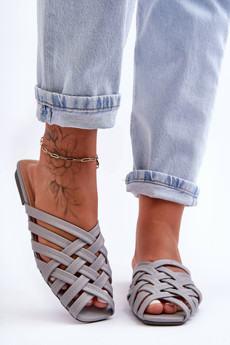 Classic women's sandals have been made of eco leather. These shoes have been set on a flat heel. On the front there are thin, braided straps. The soft insole allows for comfortable use of the footwear. When choosing a size, please refer to the size chart.