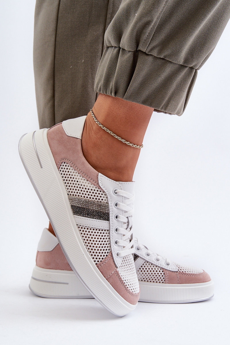 Light and airy women's sneakers made of natural suede. Set on a platform. Rounded toes. Soft insole will provide comfort during use. Excellent for many spring-summer stylings! When choosing a size, please refer to the size chart.