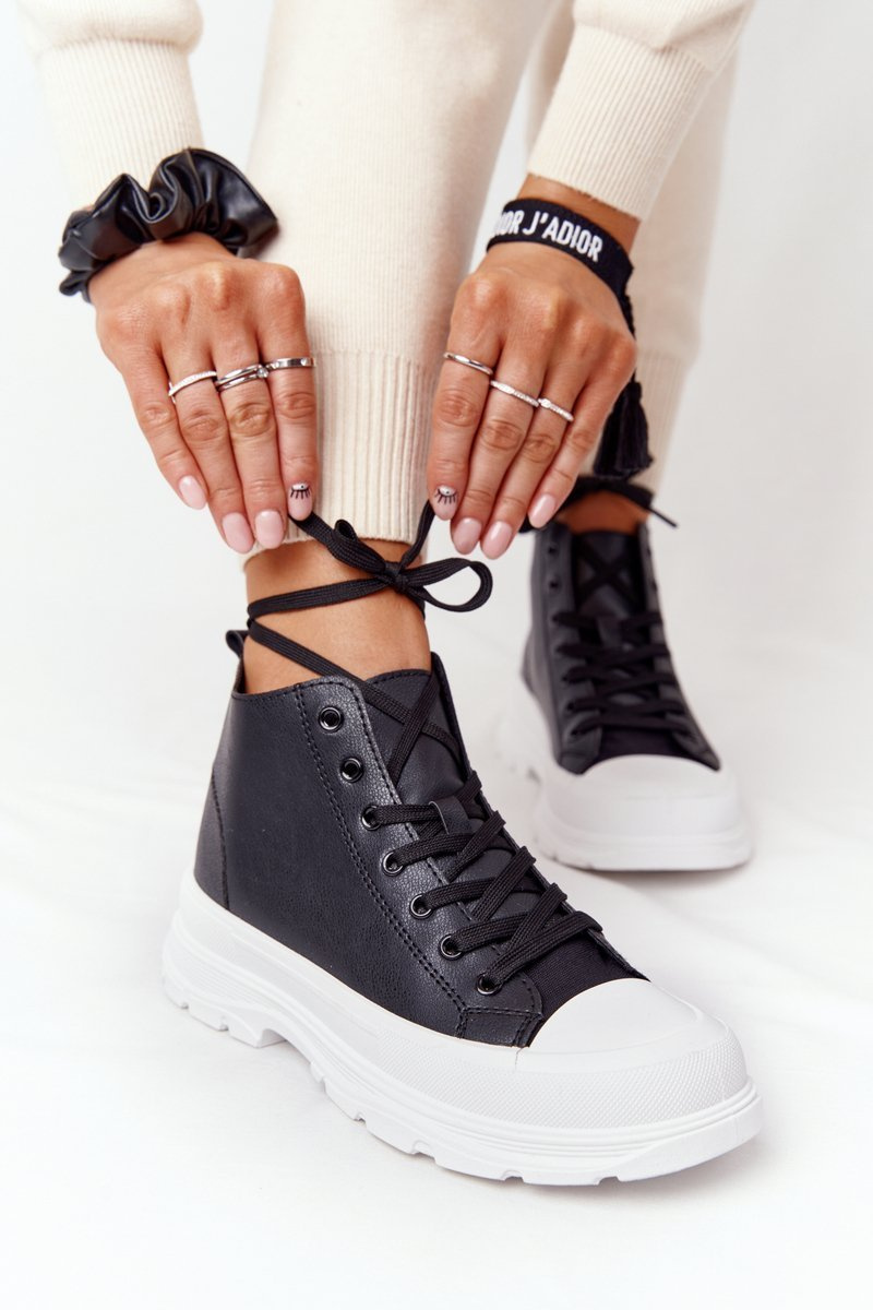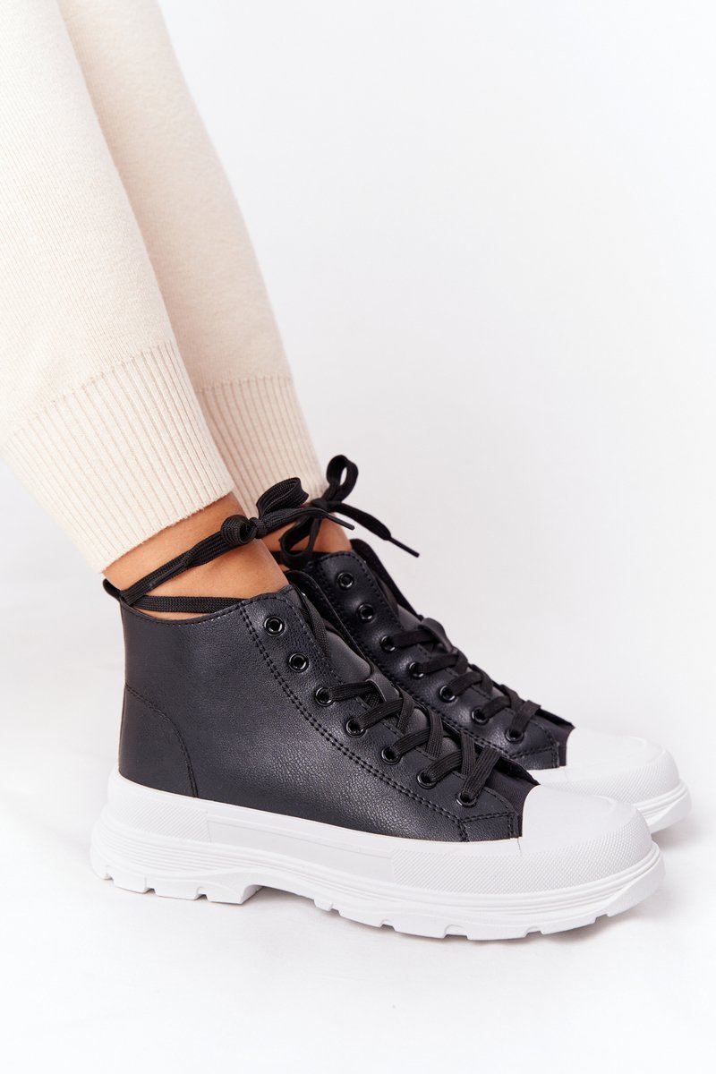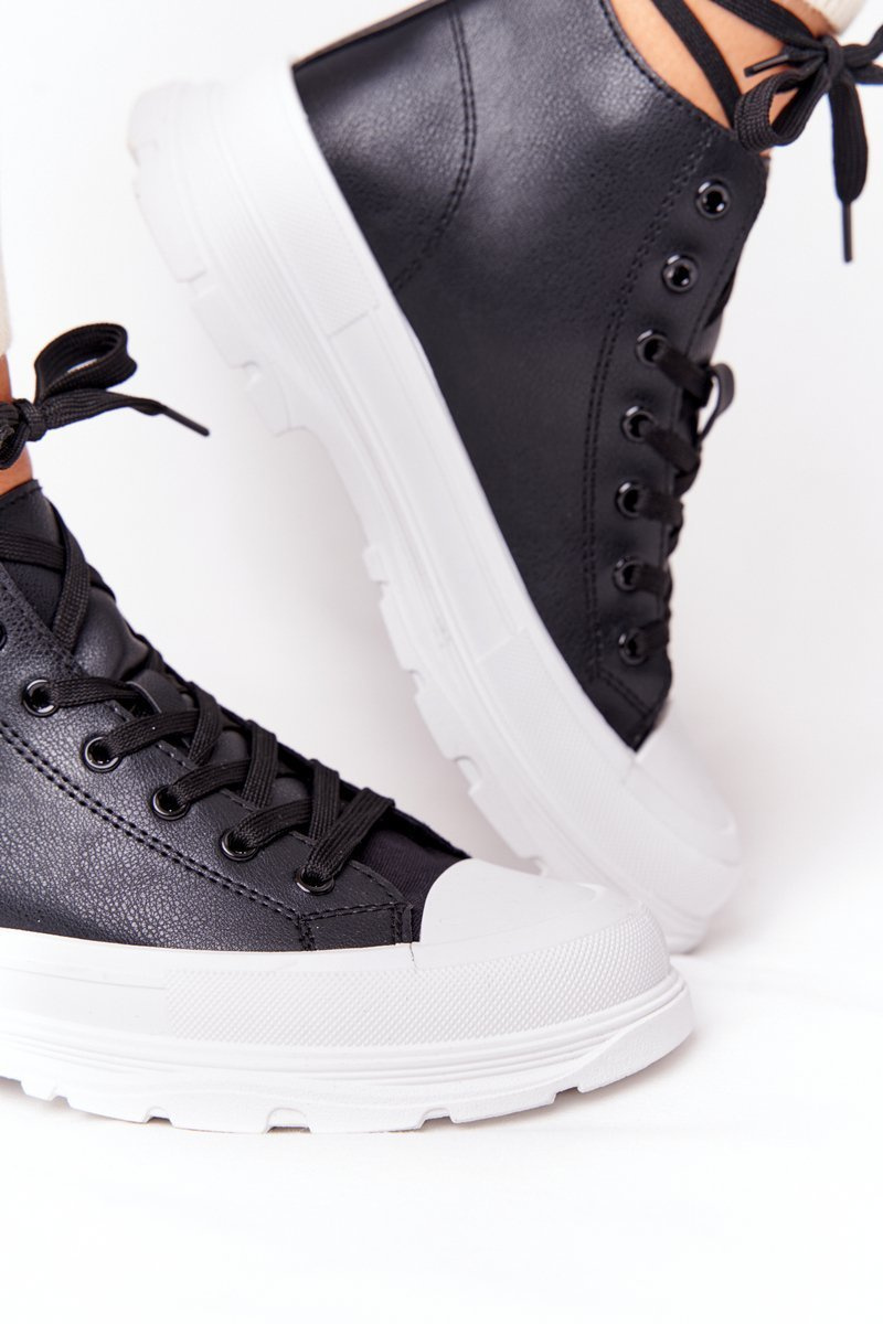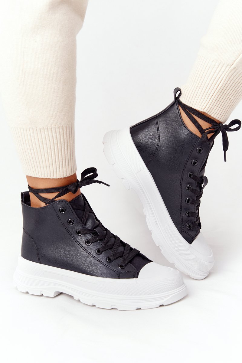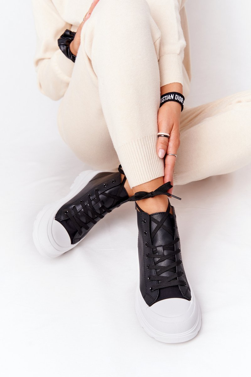 Women's Leather Sneakers On A Chunky Sole Black Trissy