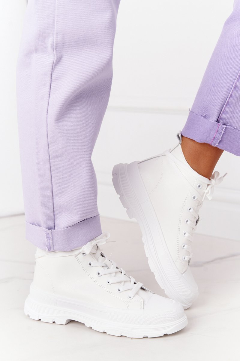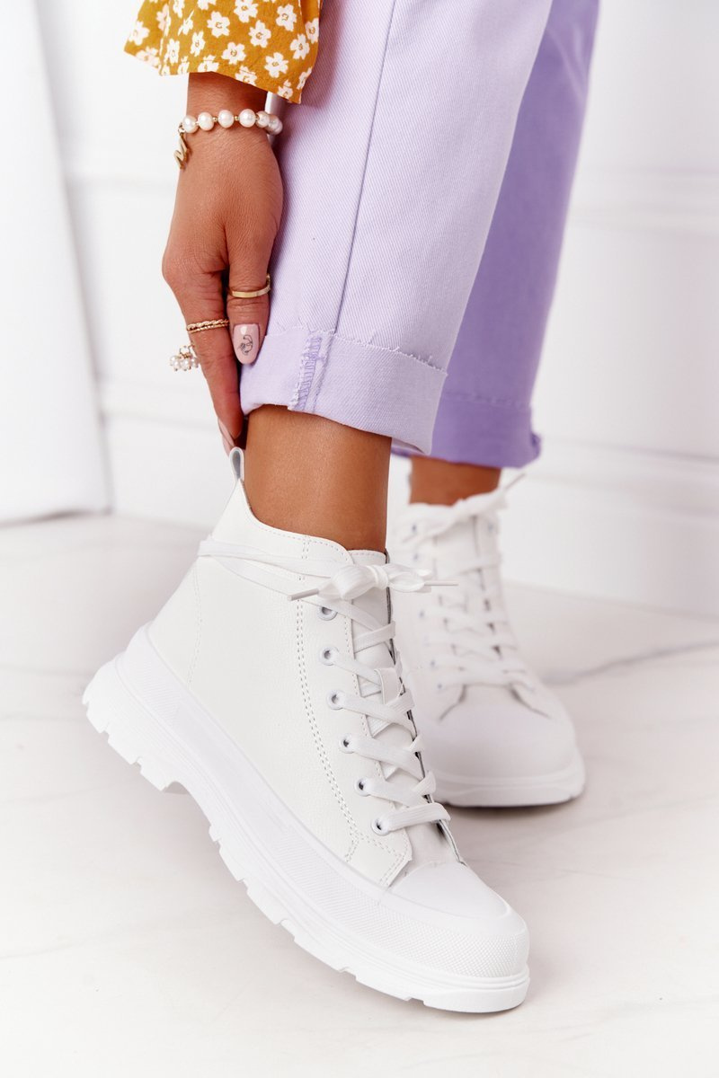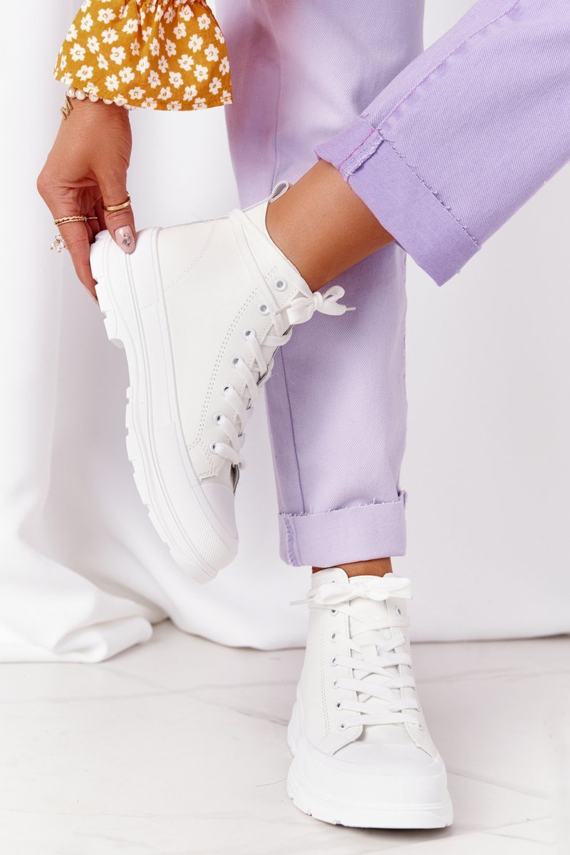 Women's Leather Sneakers On A Chunky Sole White Trissy
