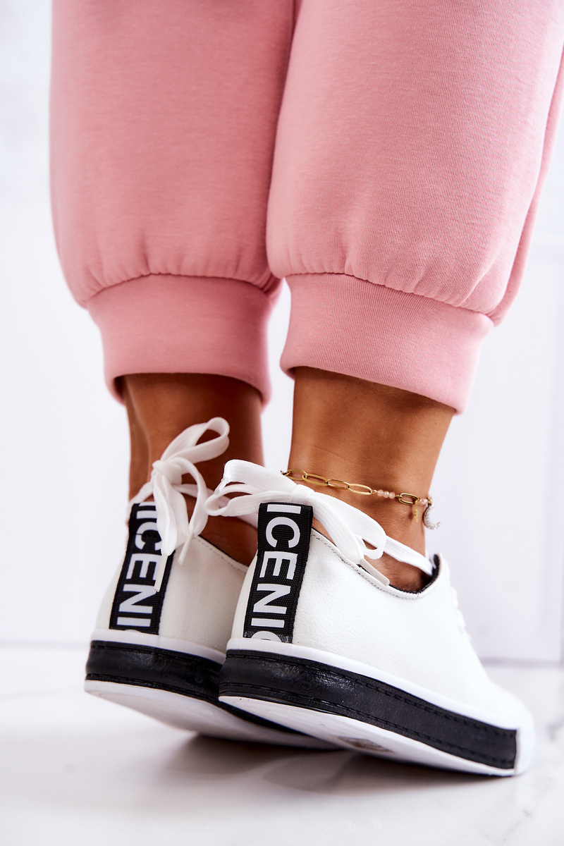 Women's sneakers made of eco leather. The classic model fits many styles, both with trousers, dresses and longer skirts. The shoes fit well to the shape of the foot. They have a soft, fabric insole. Classically tied model. The shoes have a non-slip sole. When choosing a size, please use the size chart.