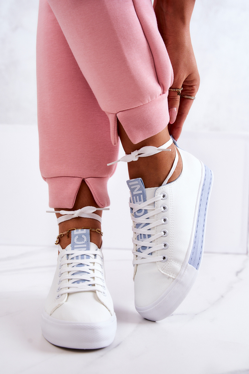Women's sneakers made of eco leather. The classic model fits many styles, both with trousers, dresses and longer skirts. The shoes fit well to the shape of the foot. They have a soft, fabric insole. Classically tied model. The shoes have a non-slip sole. When choosing a size, please use the size chart.