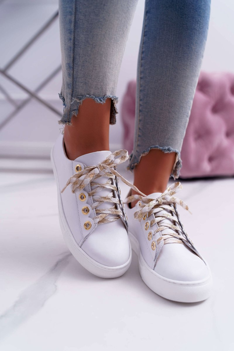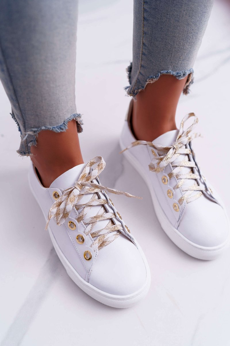 Great women's sneakers that will fit perfectly into any styling. The upper is made of natural leather, decorated with gold eyelets. The insole is also natural leather, which will provide us with comfort. Classic design in an elegant leather version. When choosing the size, please suggest the size chart available after hovering over or clicking on the size.