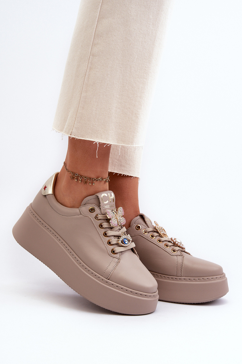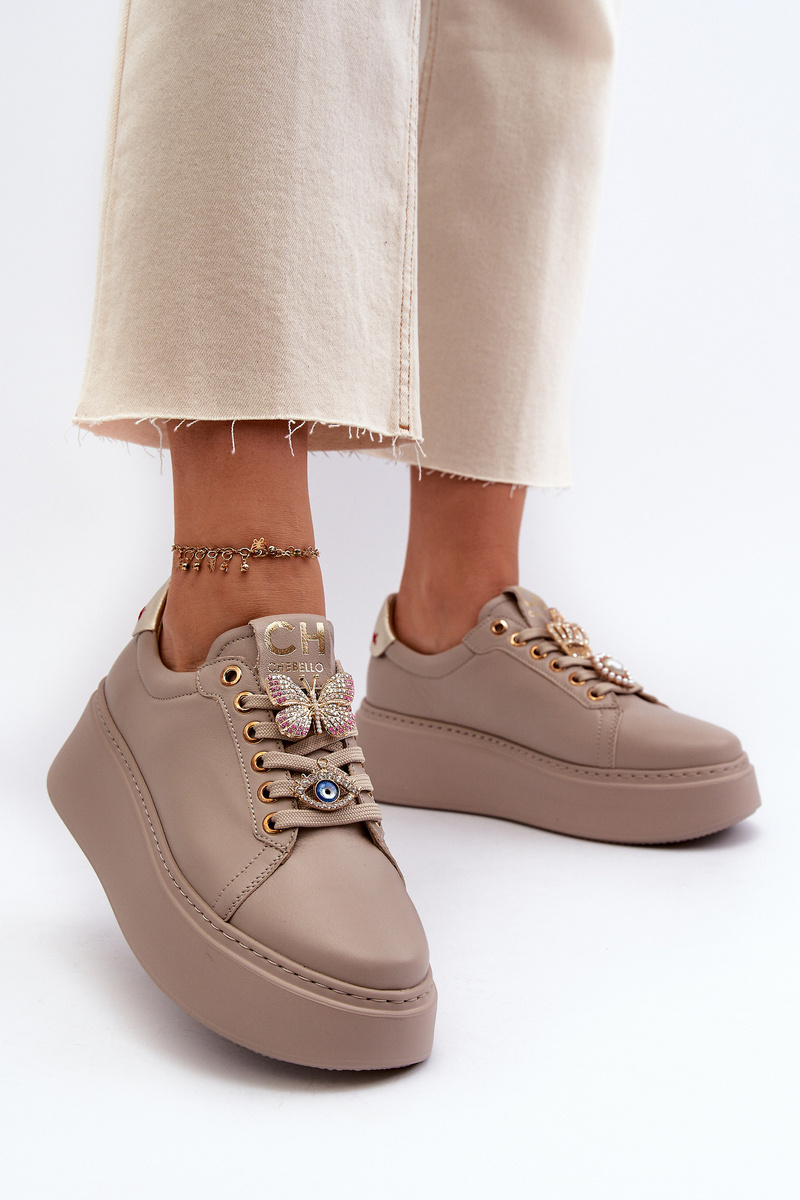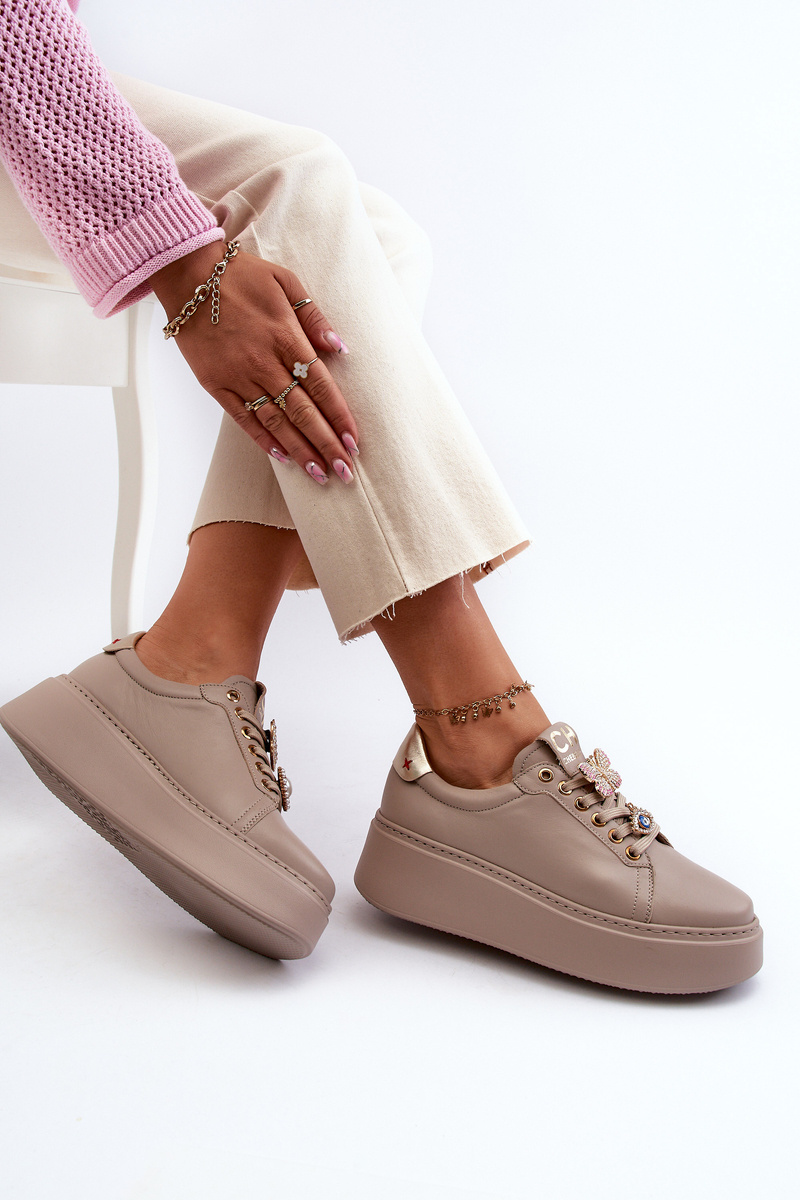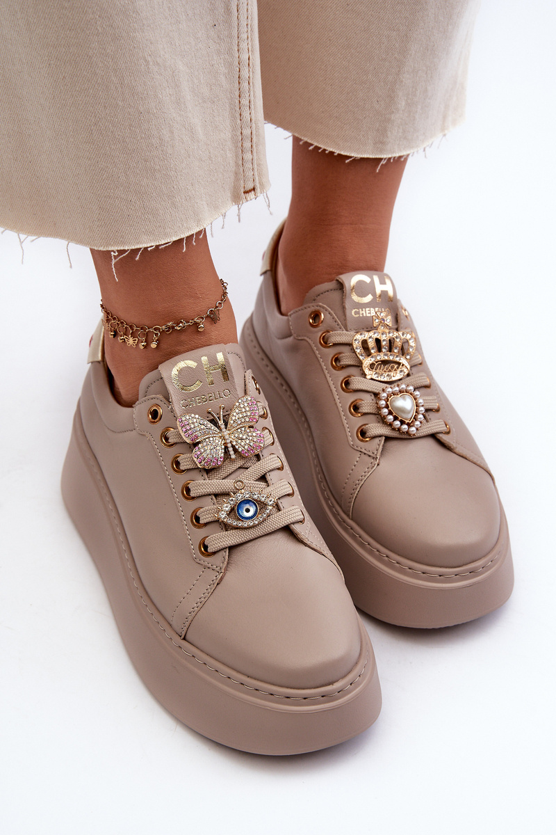 Women's Leather Sneakers With Decorations CheBello 4292 Beige