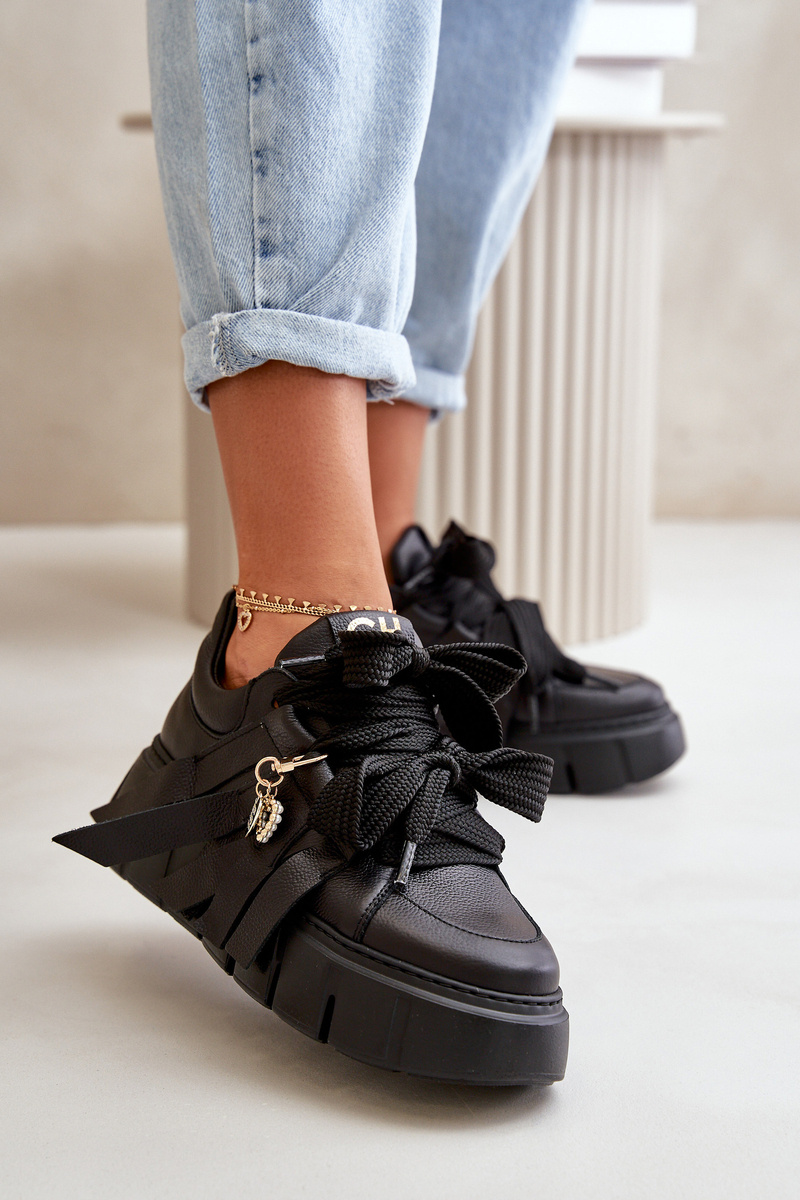 Women's sneakers made of high-quality natural leather are a proposal for lovers of elegance combined with modern design. Set on a chunky platform, these shoes add not only height but also a distinctive character to any outfit. The model stands out with unique, thick lacing, which is additionally adorned with two charming little hearts, adding a subtle, romantic touch to the whole. Perfect for both casual and bolder streetwear outfits, these sneakers combine wearing comfort with exceptional style. When choosing a size, please refer to the size chart.