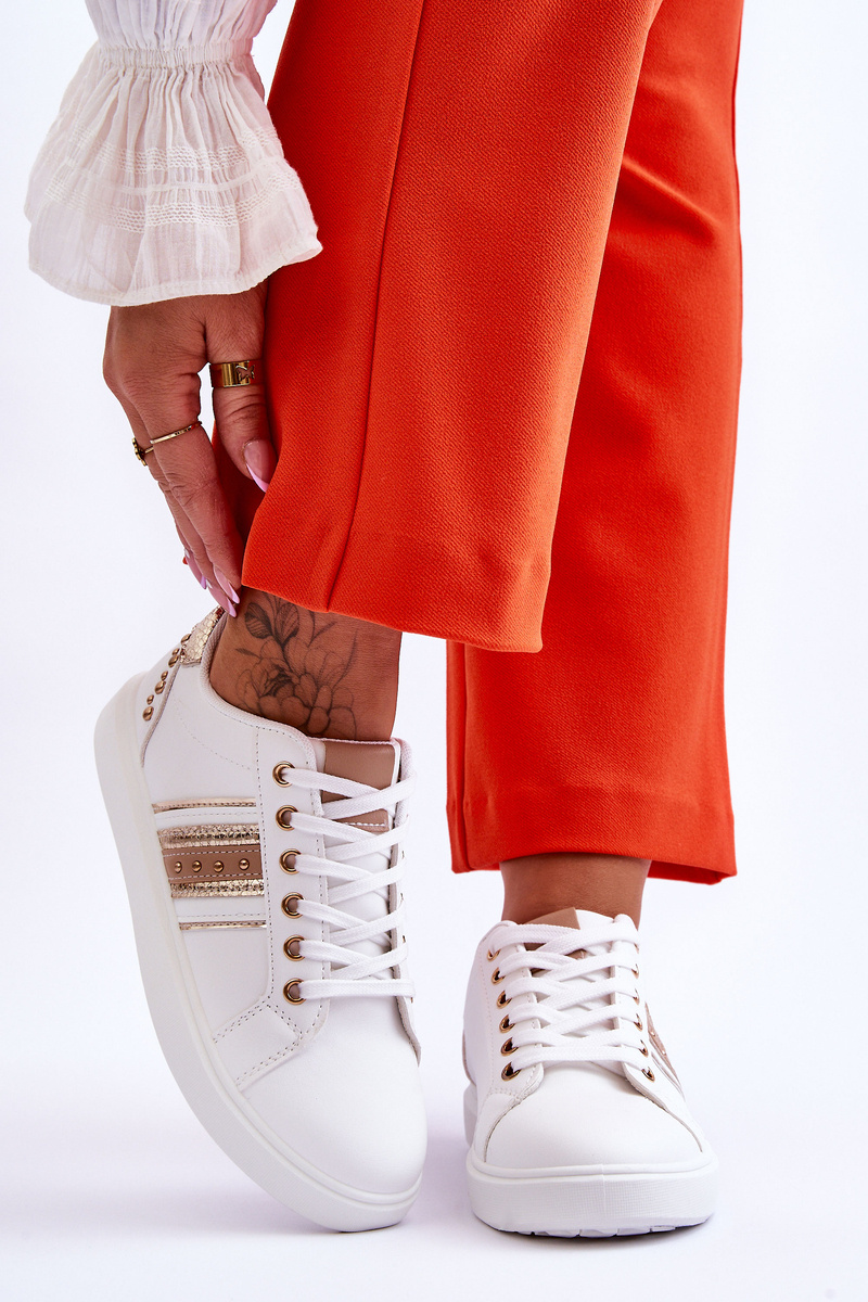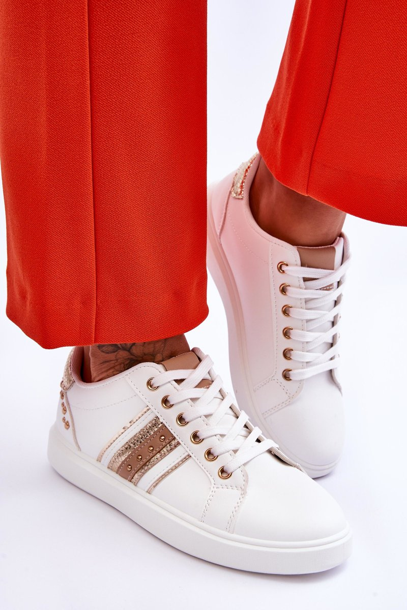 Women's Leather Sneakers With Studs White and Gold Dory