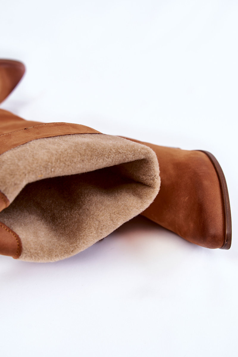 Unique women's boots with a musket cut. The high upper by the knee is slipped and additionally closed with a zipper. The heel counter is stiffened, which will ensure stabilization of the foot. The model is made of high-quality leather. These boots were insulated inside with a shoe blanket. The soft insole will ensure comfort during use. When choosing a size, please use the size chart.