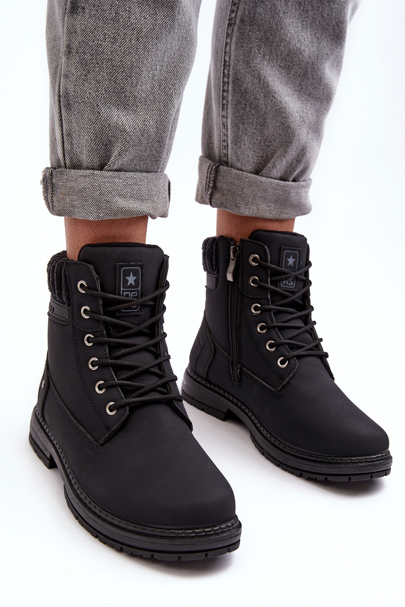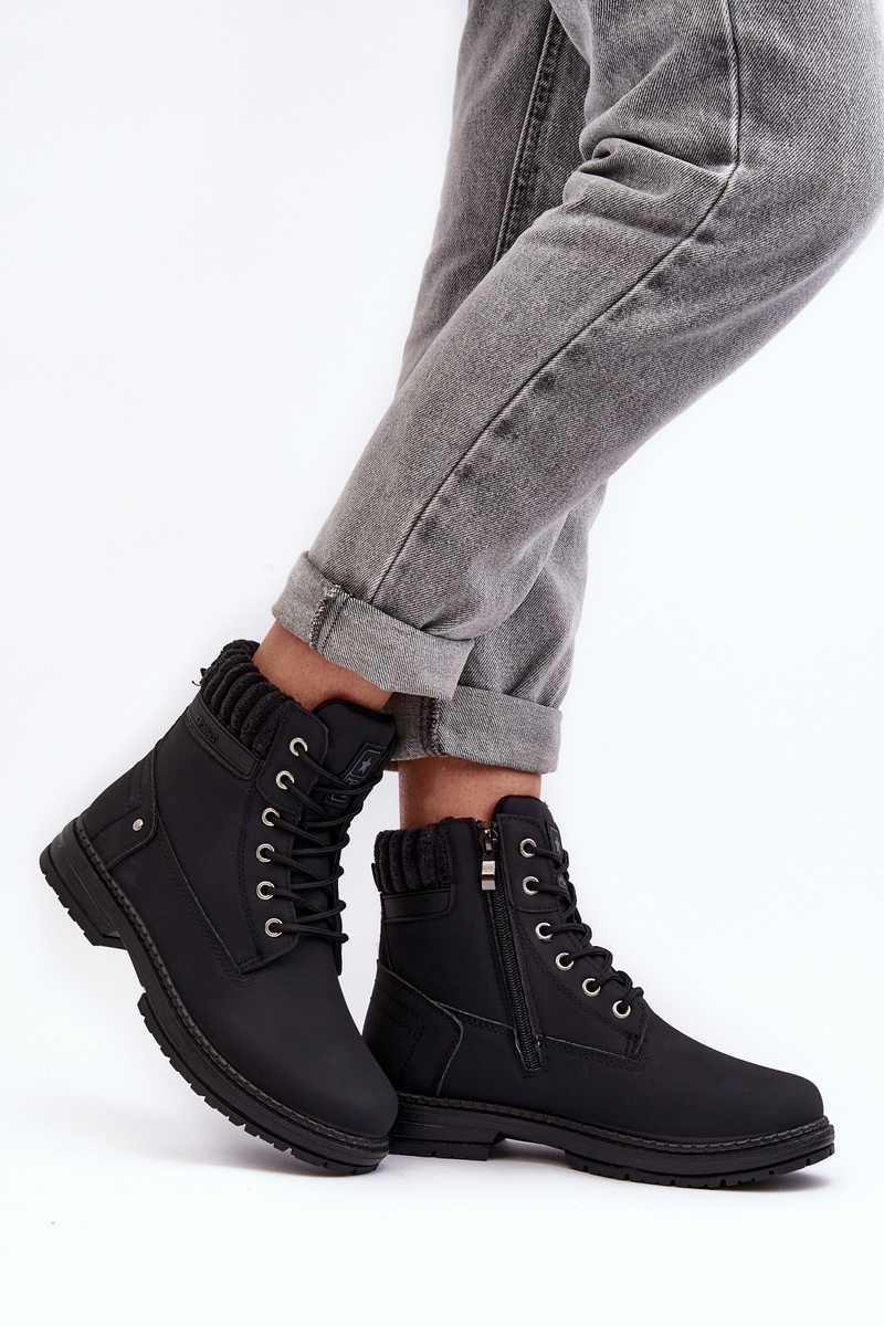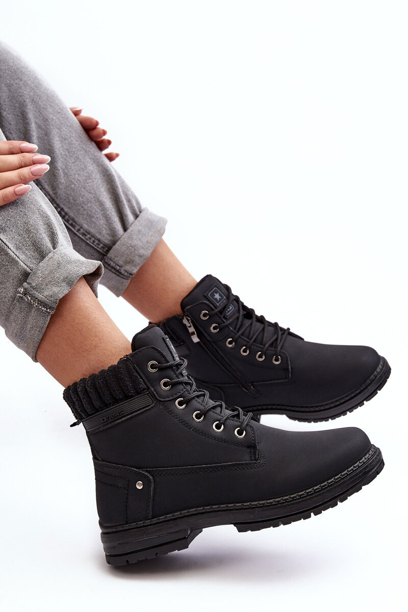 Women's boots made of eco leather. Insulated with fur inside. This model is closed with a zipper on the side and additionally has lacing. The toe is stiffened. Upper to the ankle. When choosing a size, please refer to the size chart.